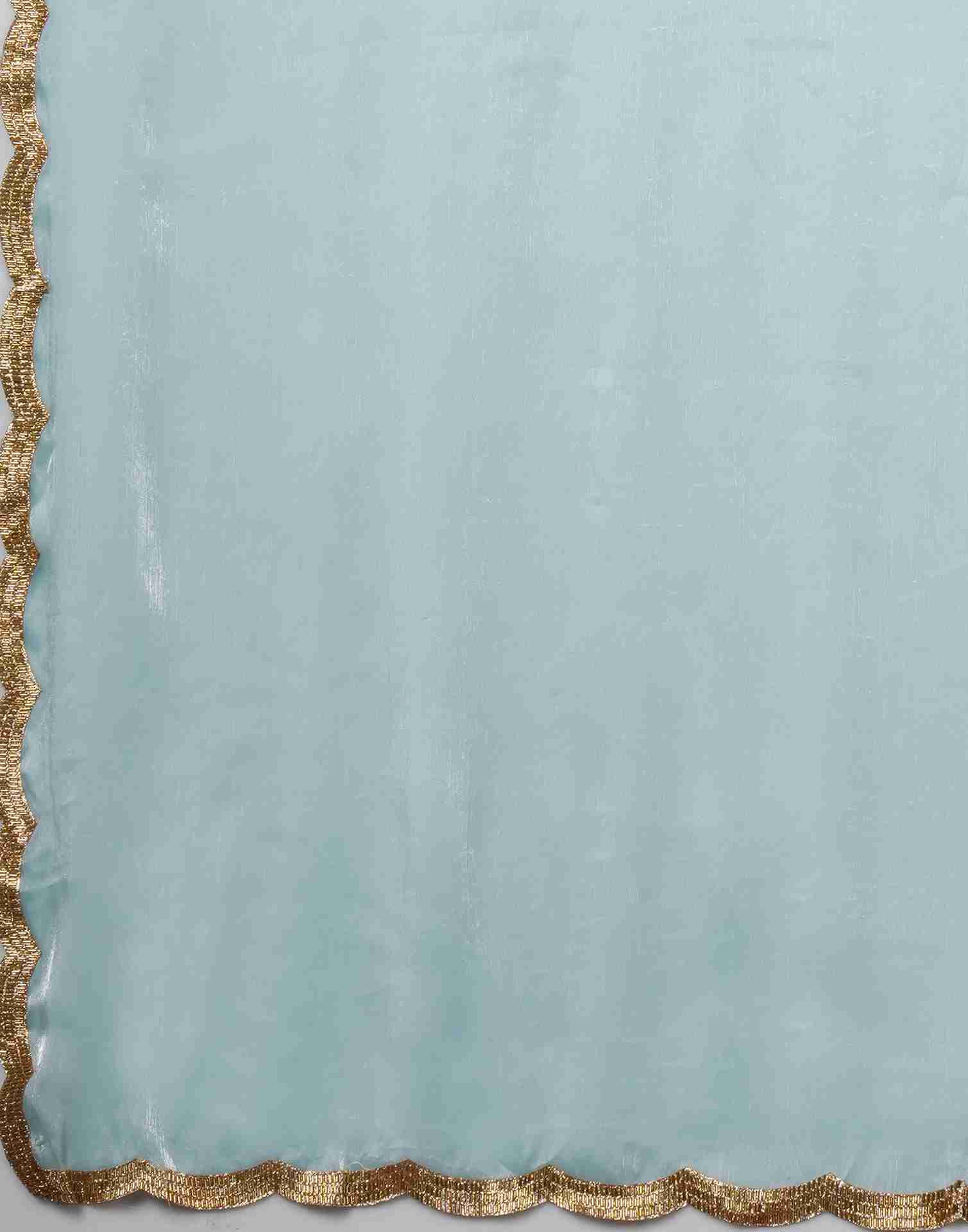 Sky Blue Chiffon Plain Jimmy Choo Saree