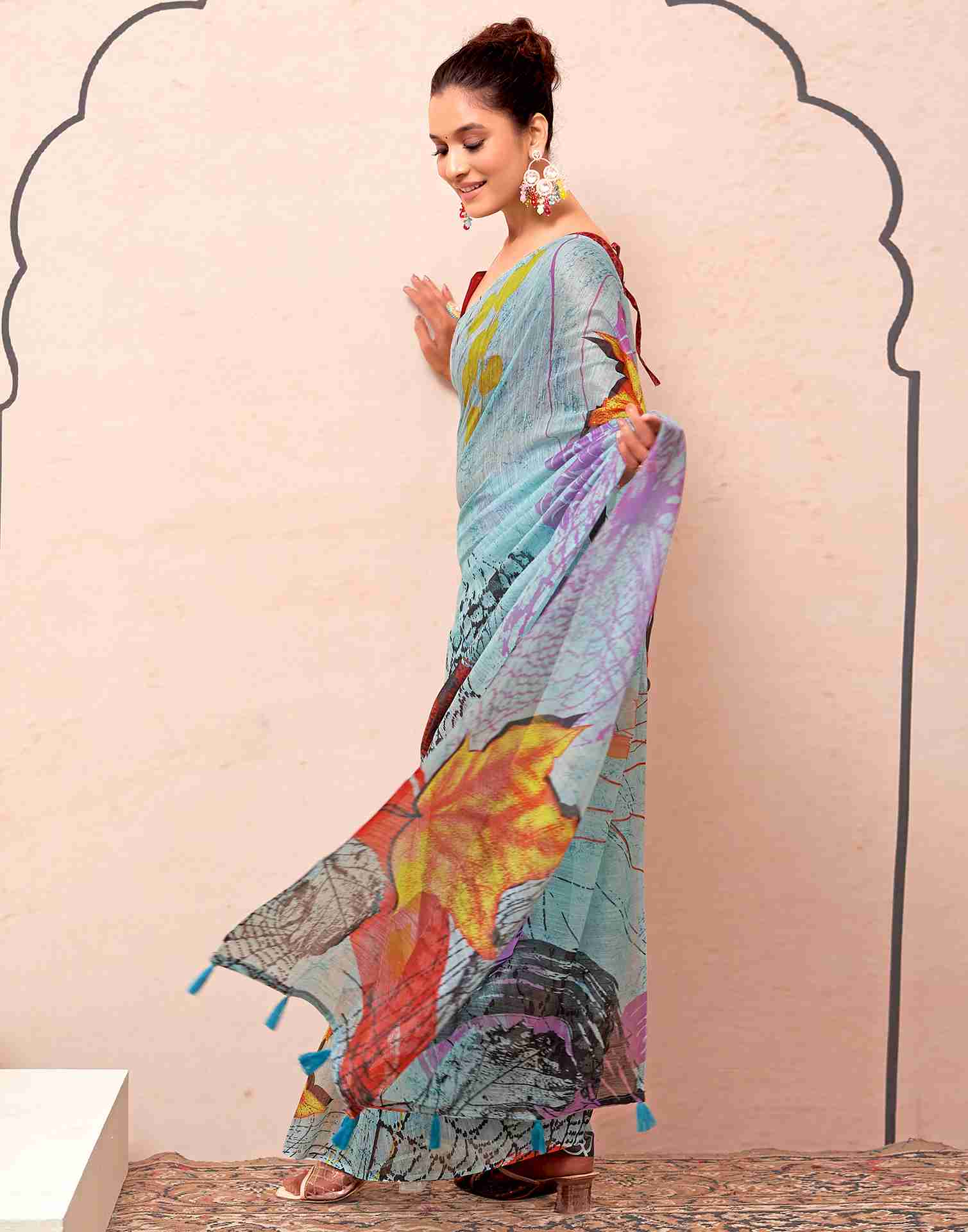 Blue Cotton Printed Saree