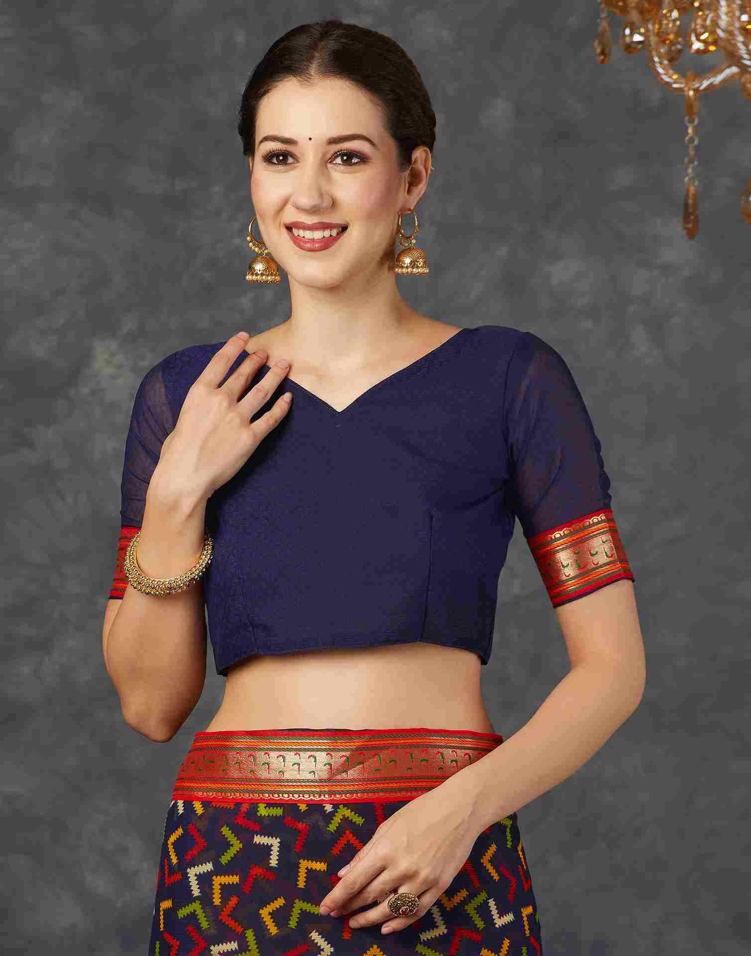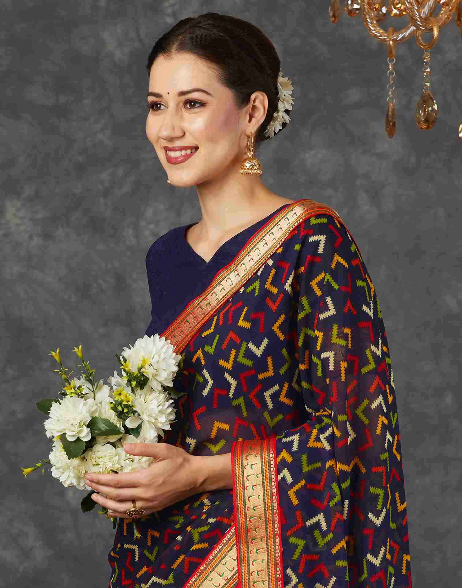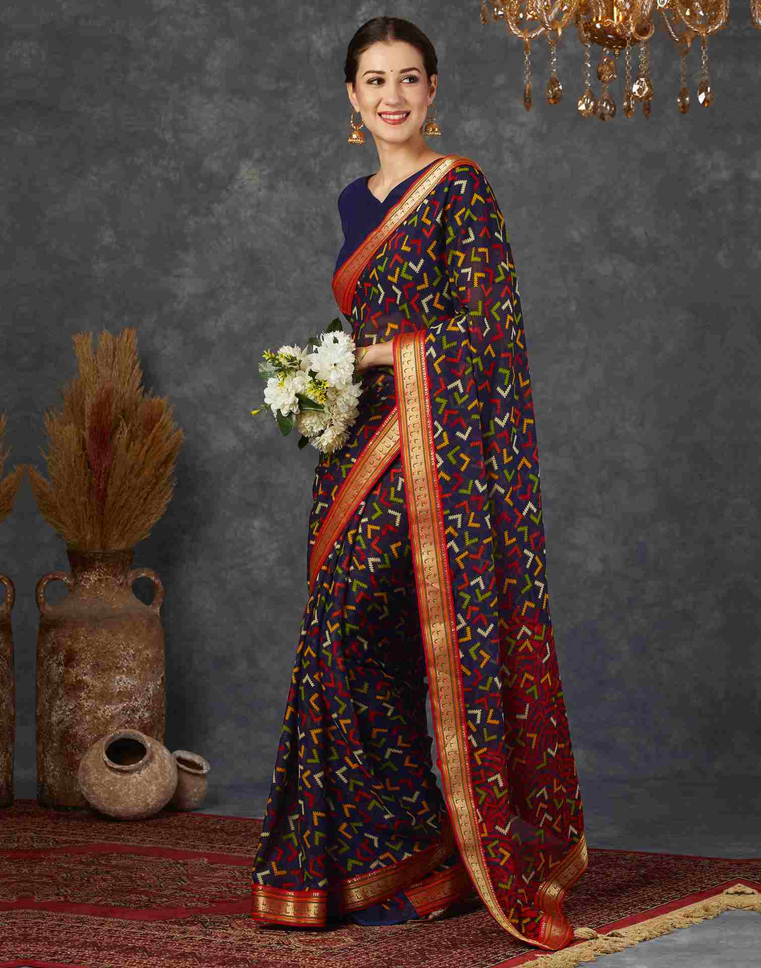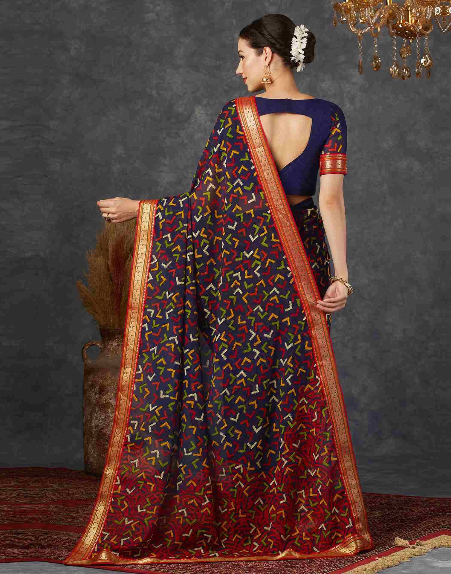 Navy Blue Georgette Printed Saree