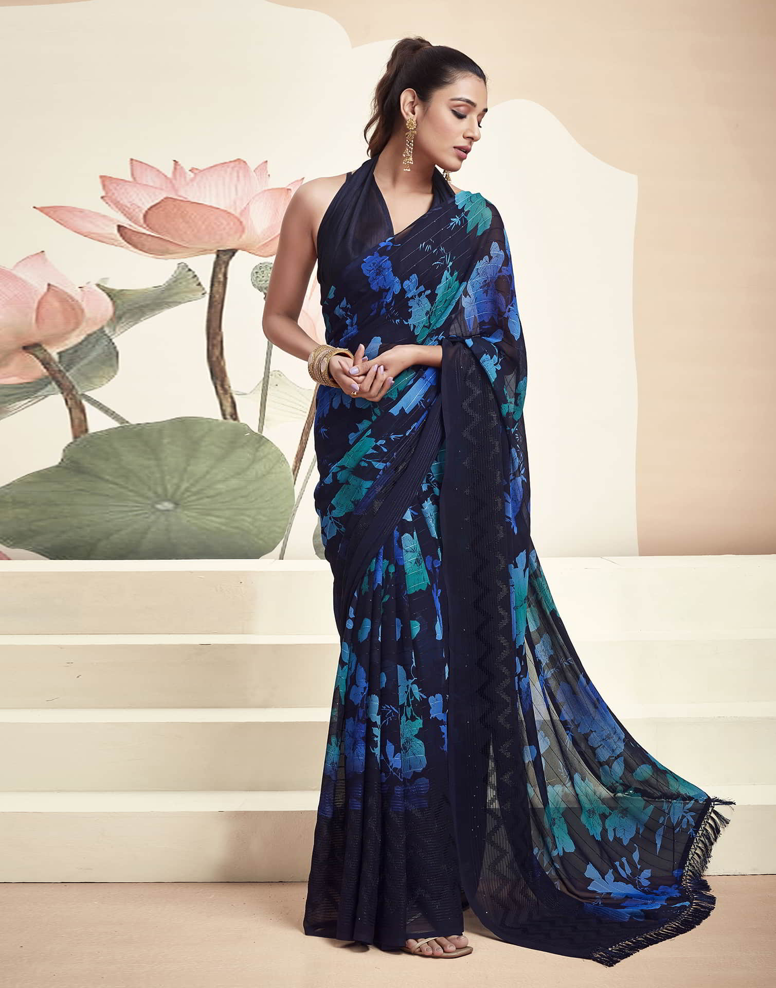 Blue Georgette Printed Saree
