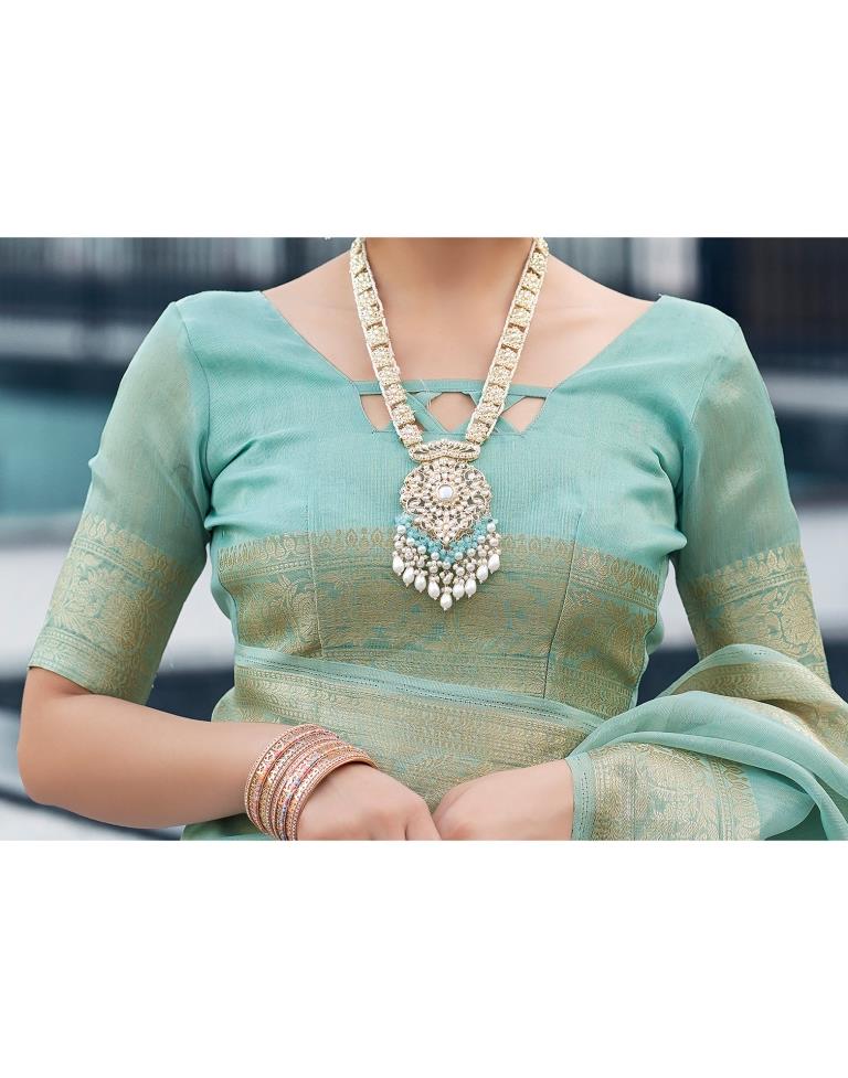 Blue Organza Woven Saree