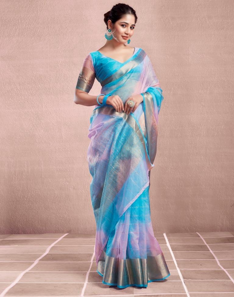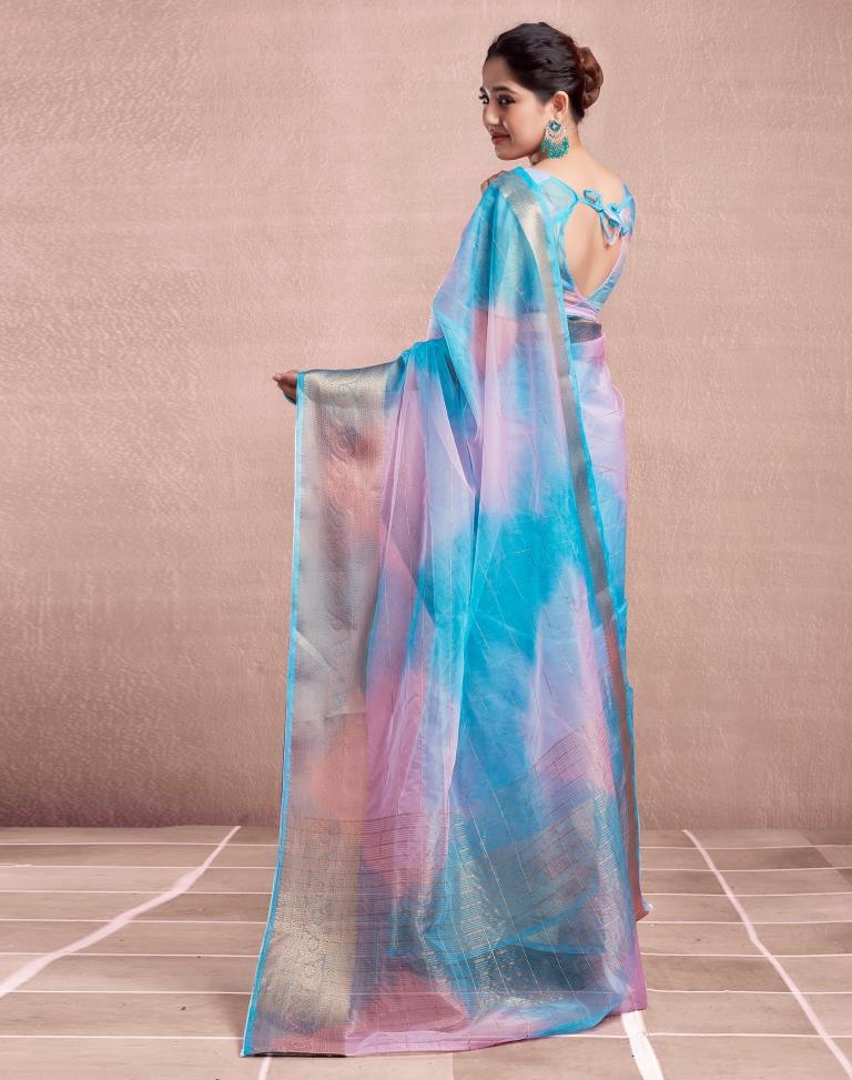 Blue Organza Printed Saree