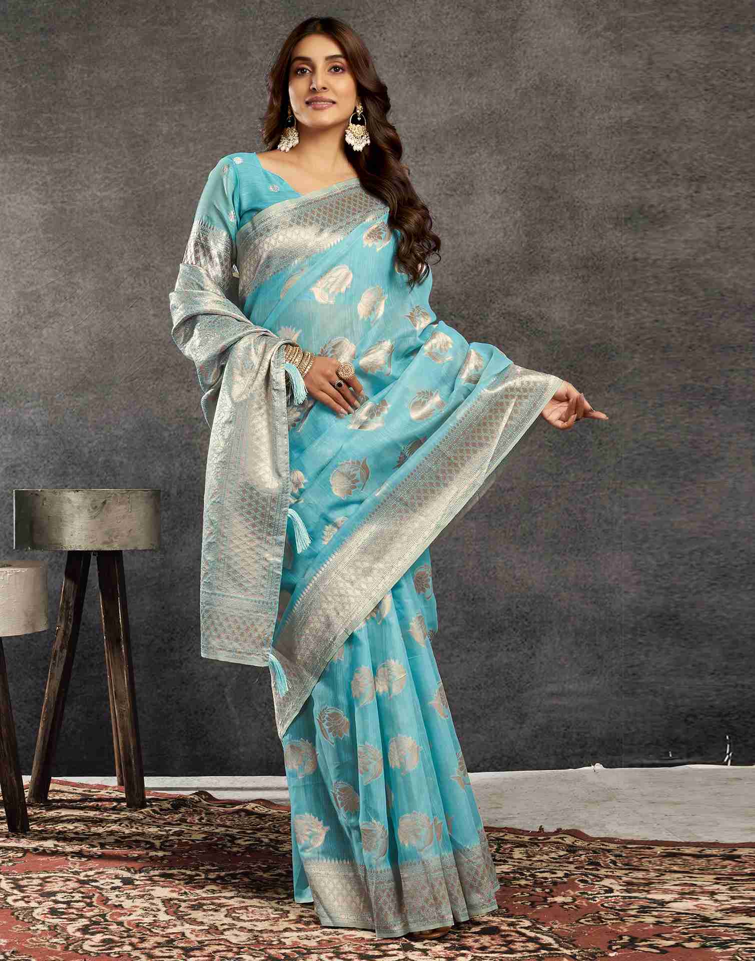 Blue Silk Woven Jacquard Saree
