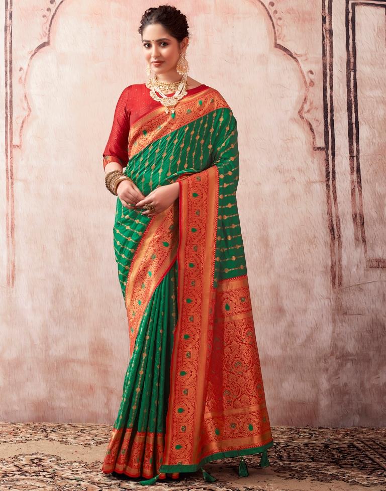 Bottle Green Silk Plain Saree