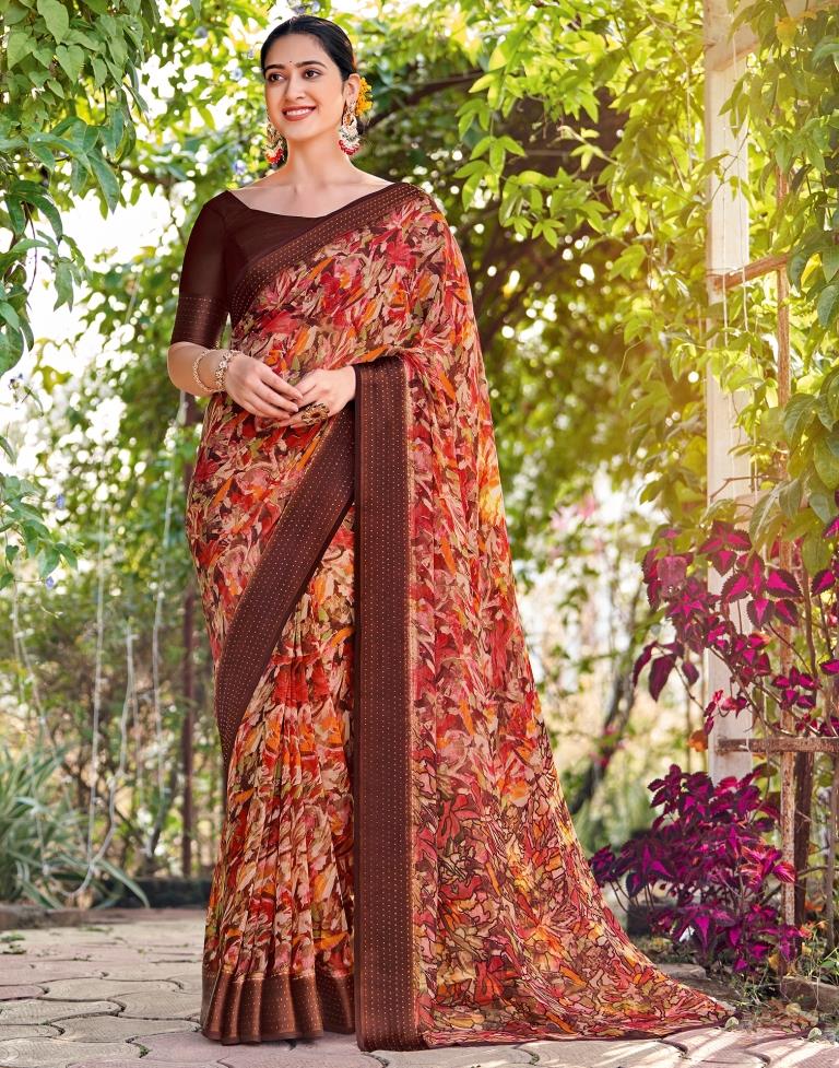 Brown Georgette Zari Saree