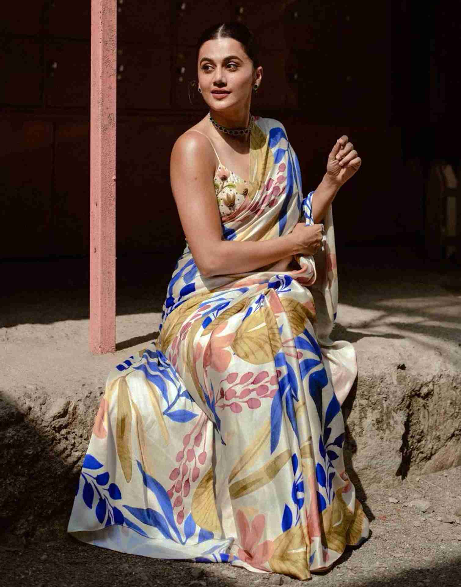 Cream Chiffon Printed Saree