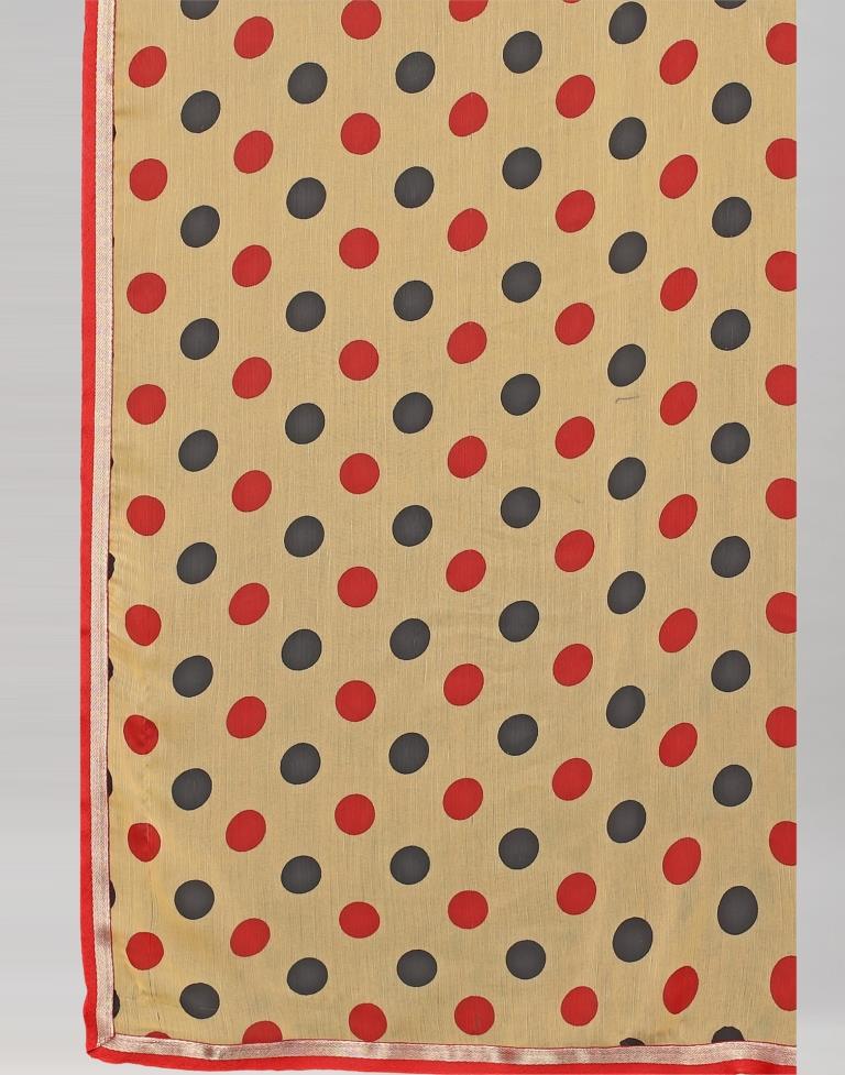 Cream Printed Chiffon Saree