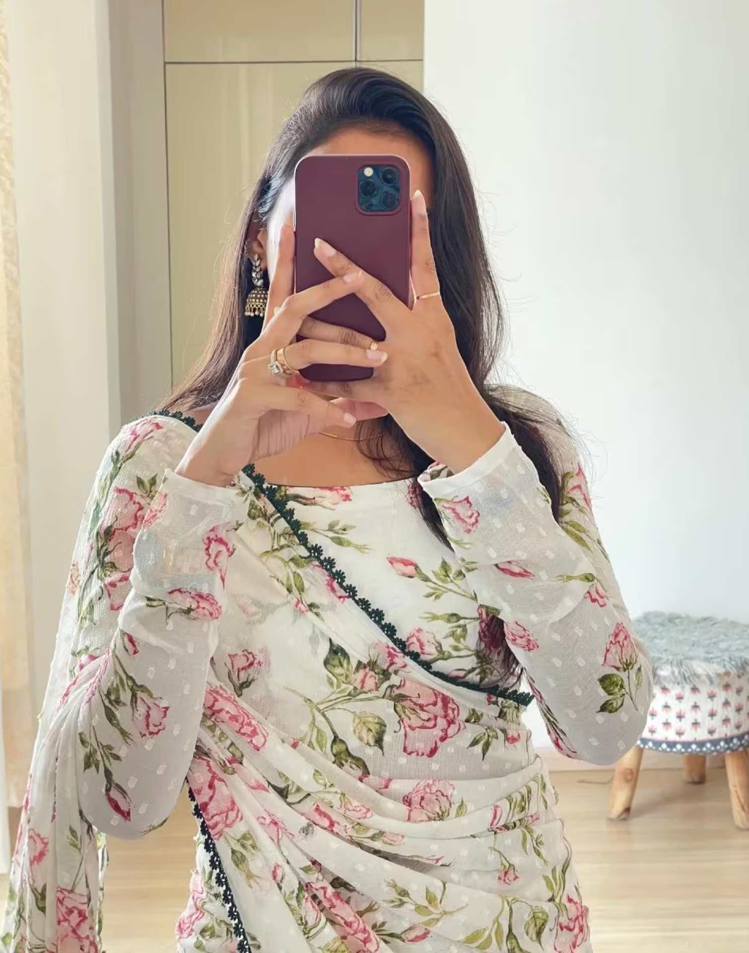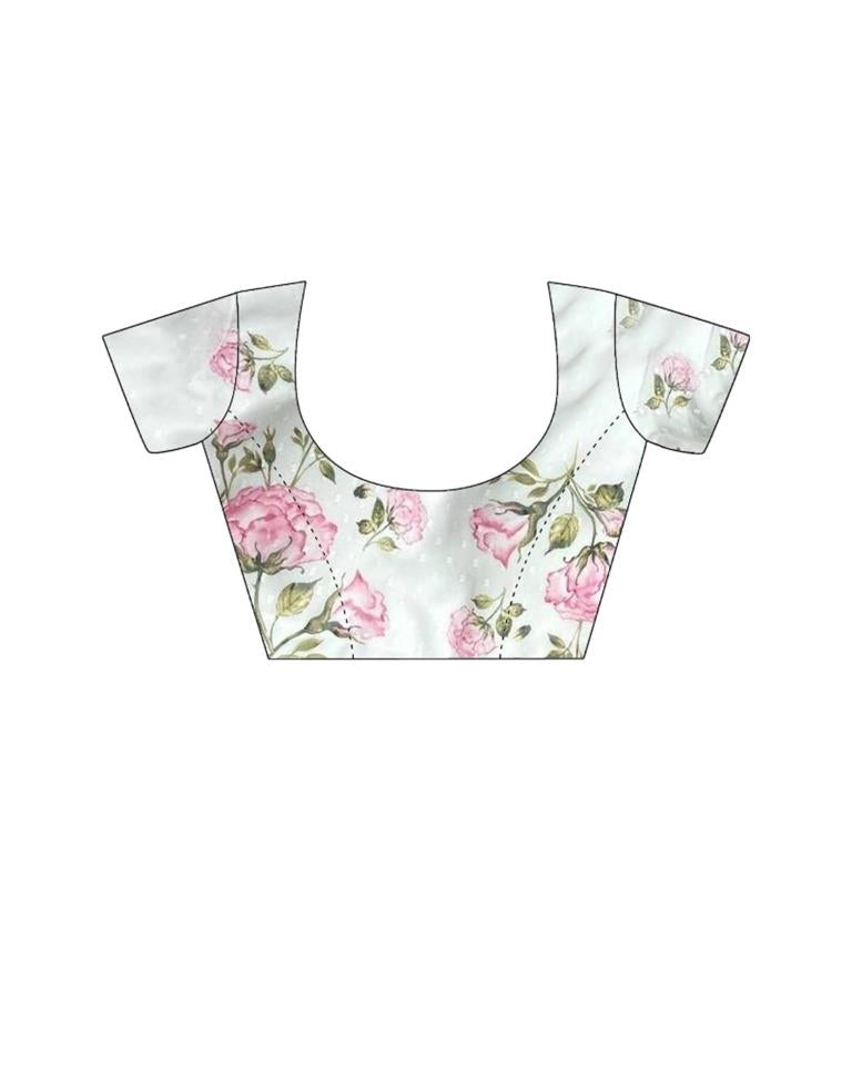 Ready to Wear White Printed Chiffon Saree