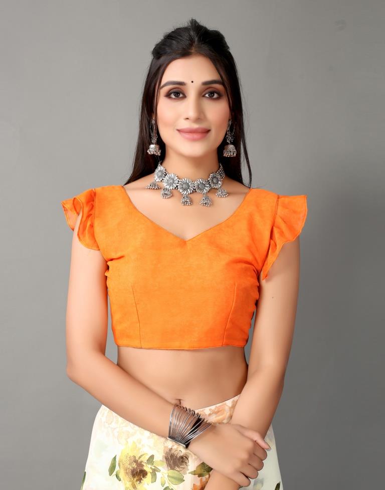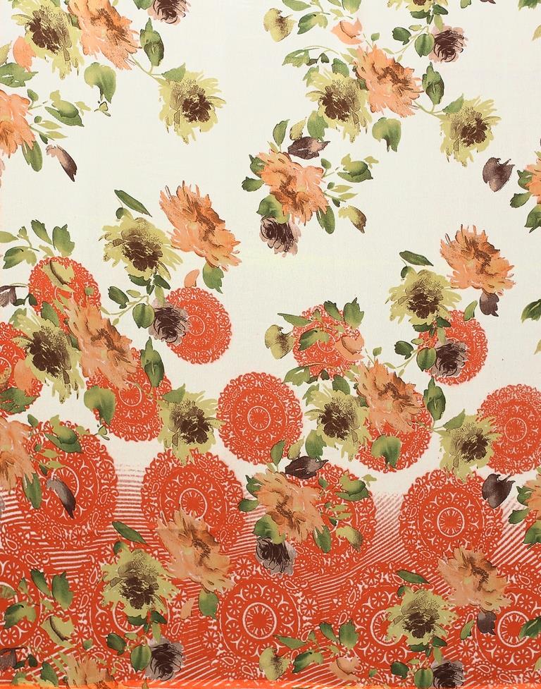 Cream Printed Georgette Saree
