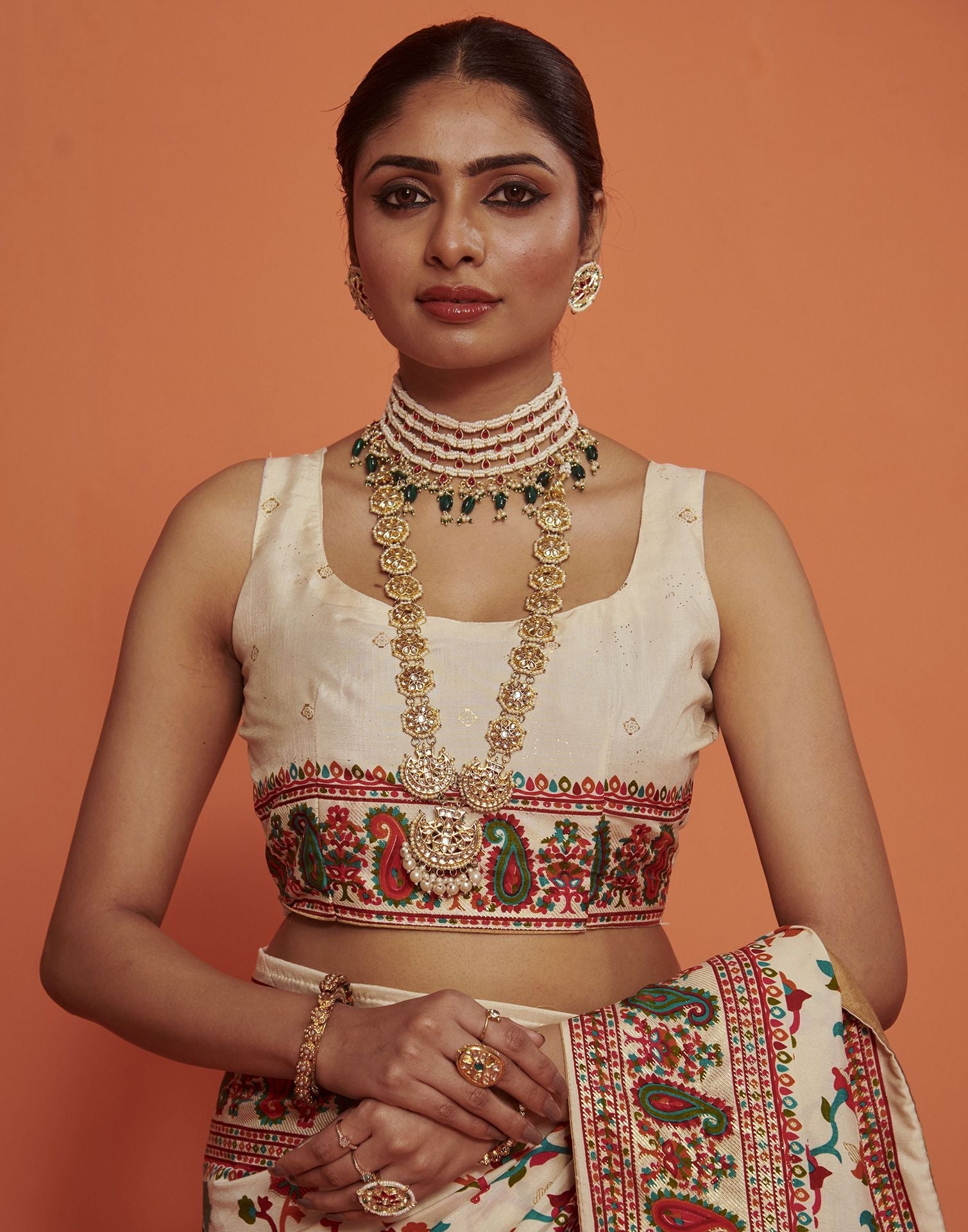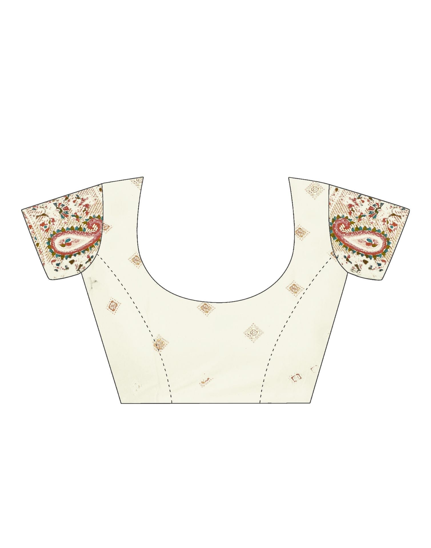 Cream & Multicoloured Printed Silk Saree