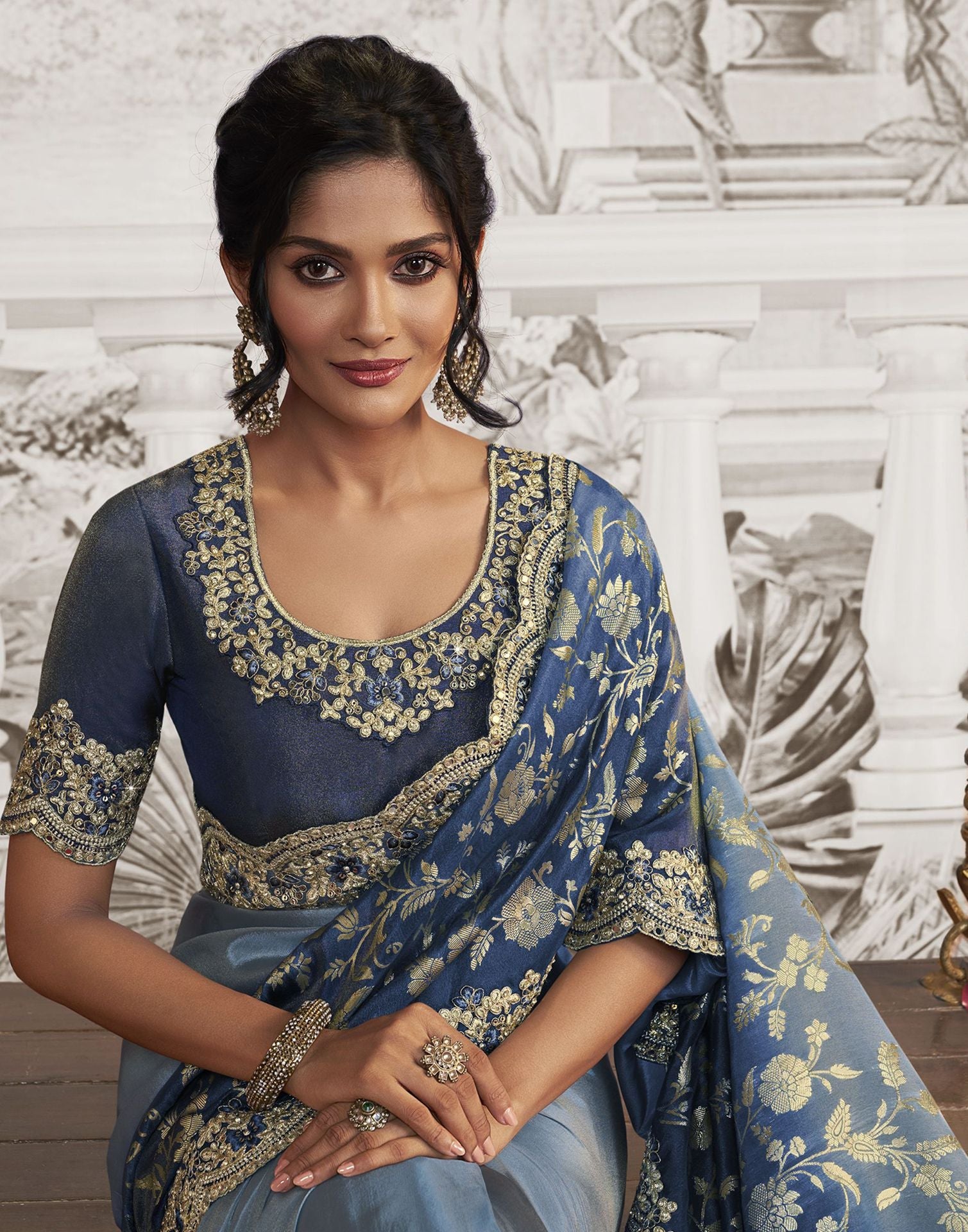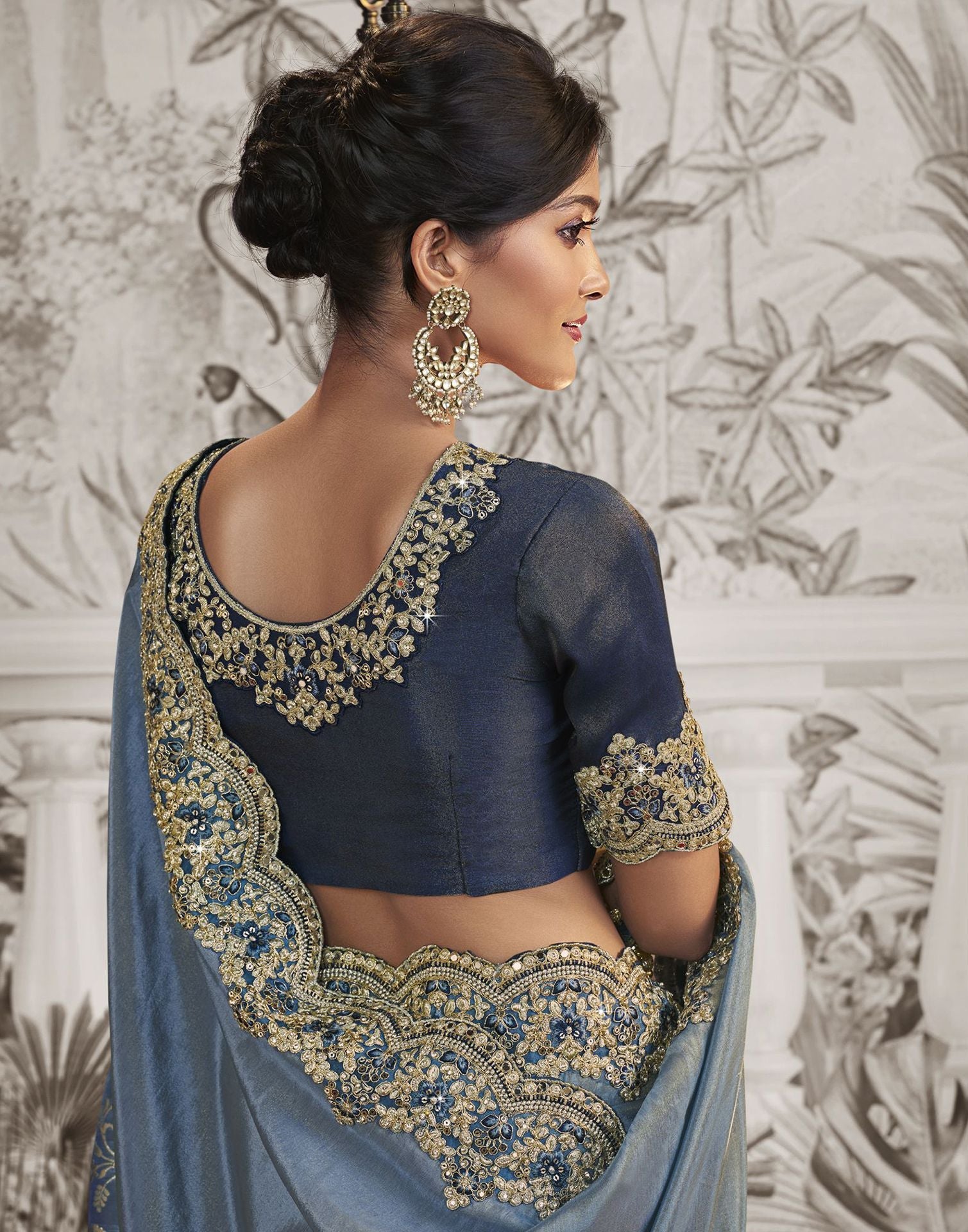 Dark Blue Plain Silk Saree