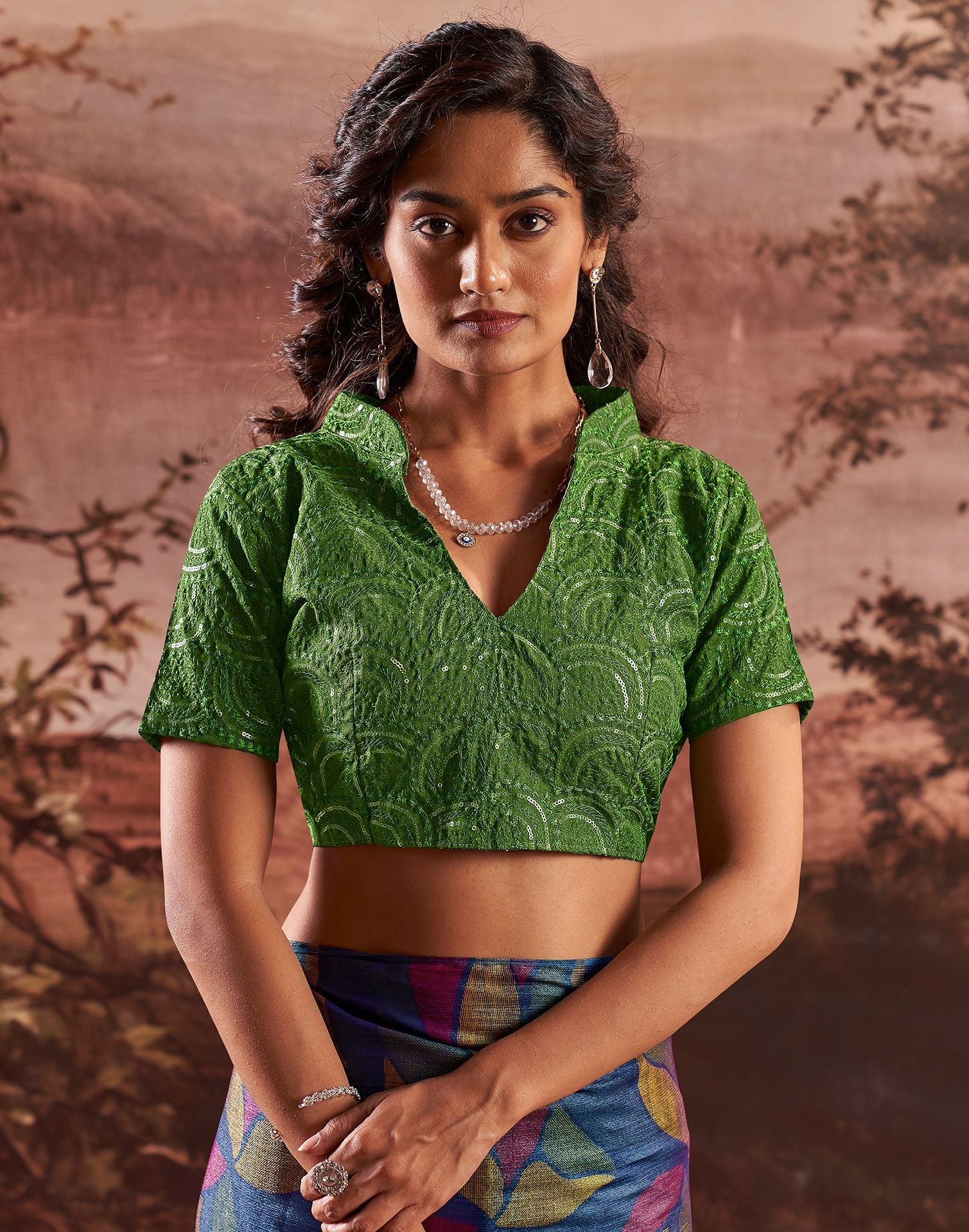 Dark Blue Printed Chiffon Saree