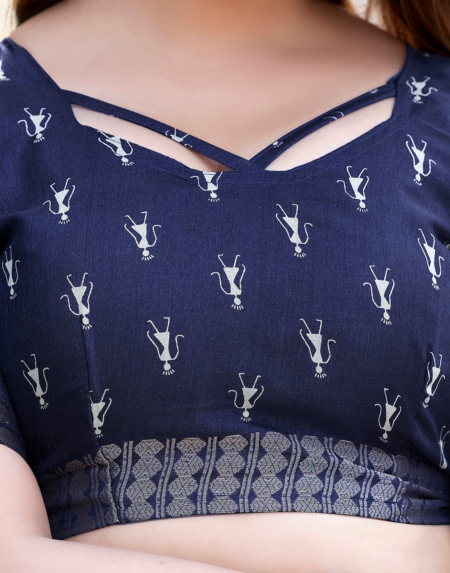Dark Blue Silk Printed Saree