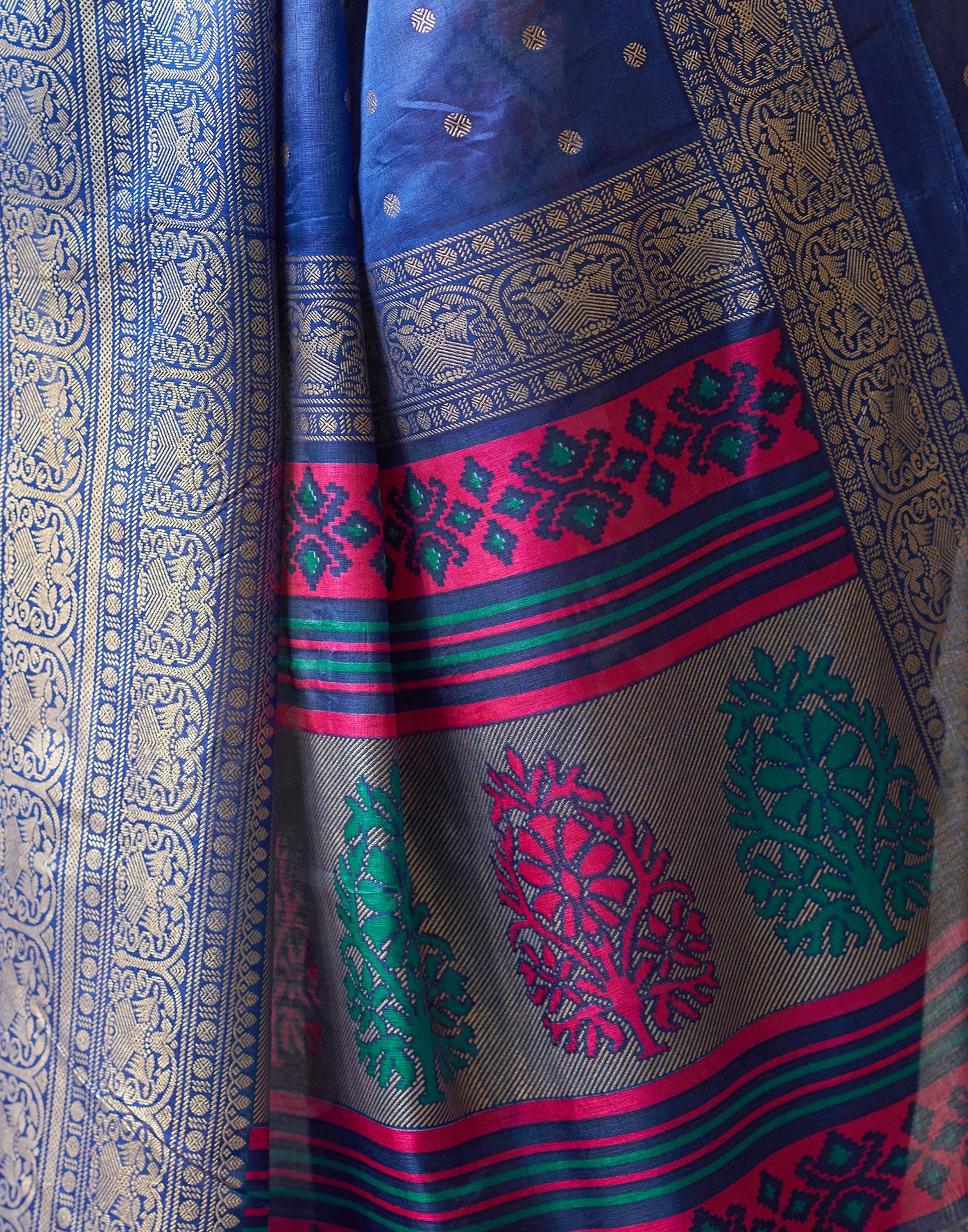 Dark Blue Silk Printed Saree