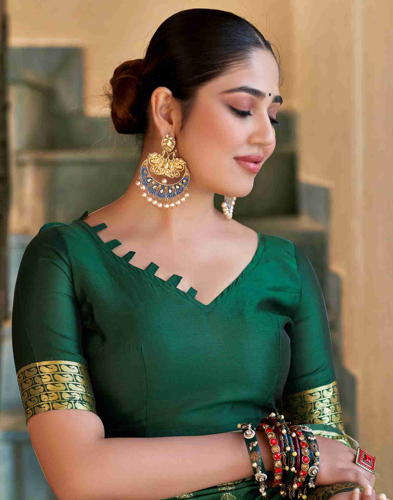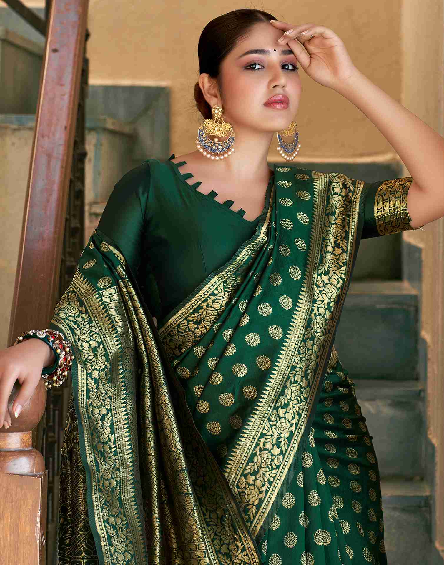 Dark Green Banarasi Silk Saree