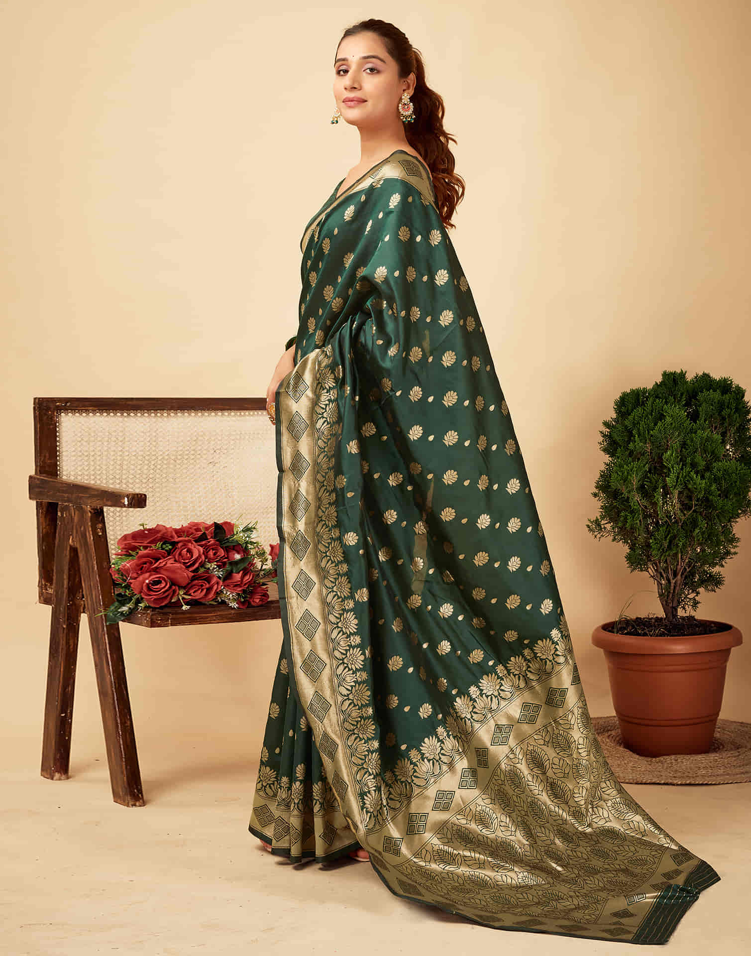 Dark Green Silk Woven Banarasi Saree