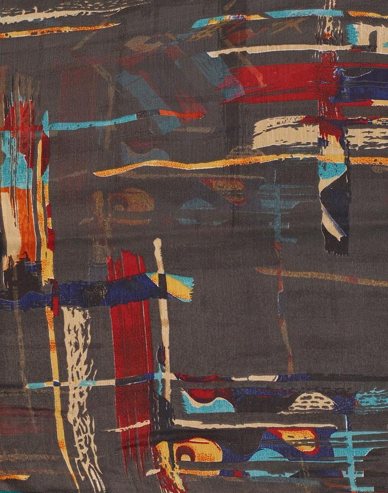 Dark Grey Chiffon Printed Saree