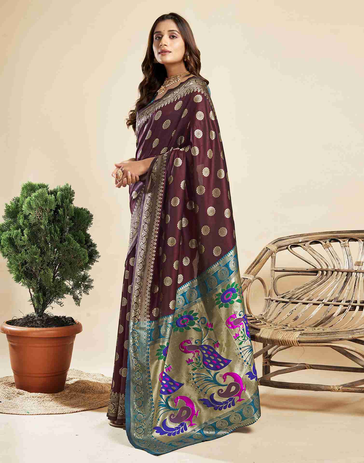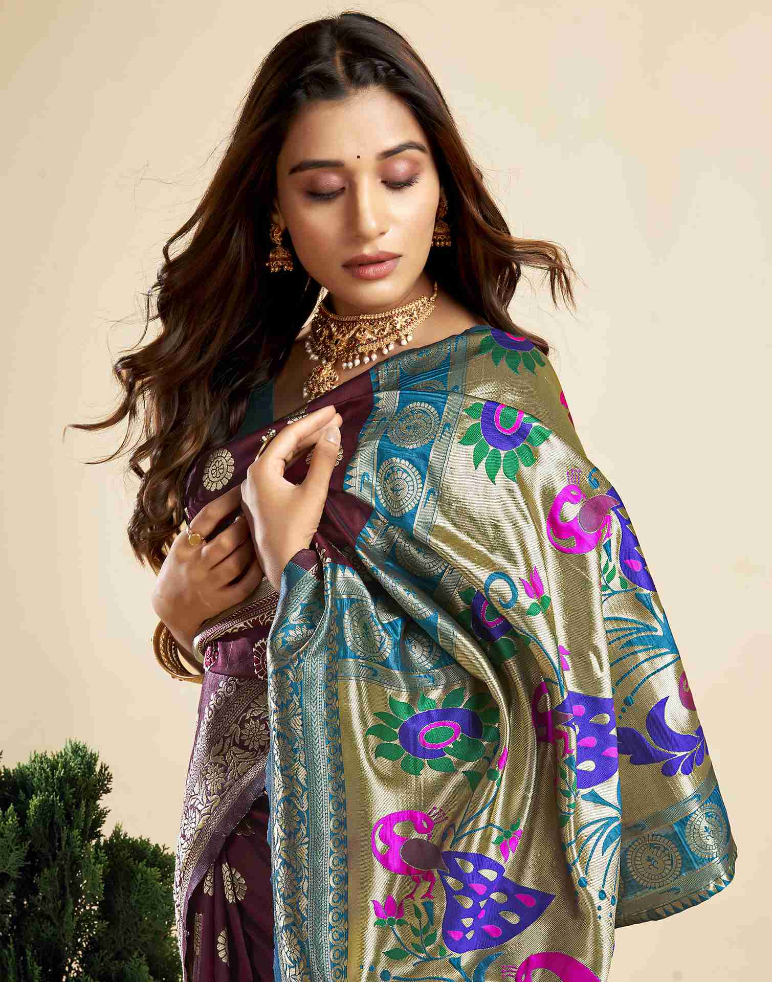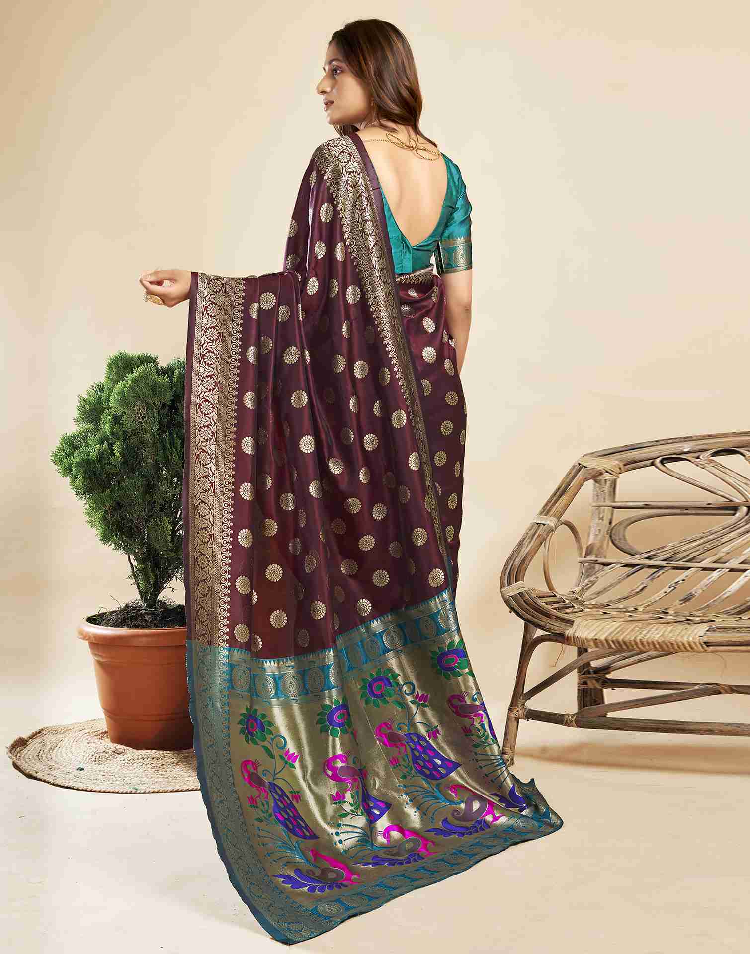 Dark Maroon Silk Woven Paithani Saree3805S523