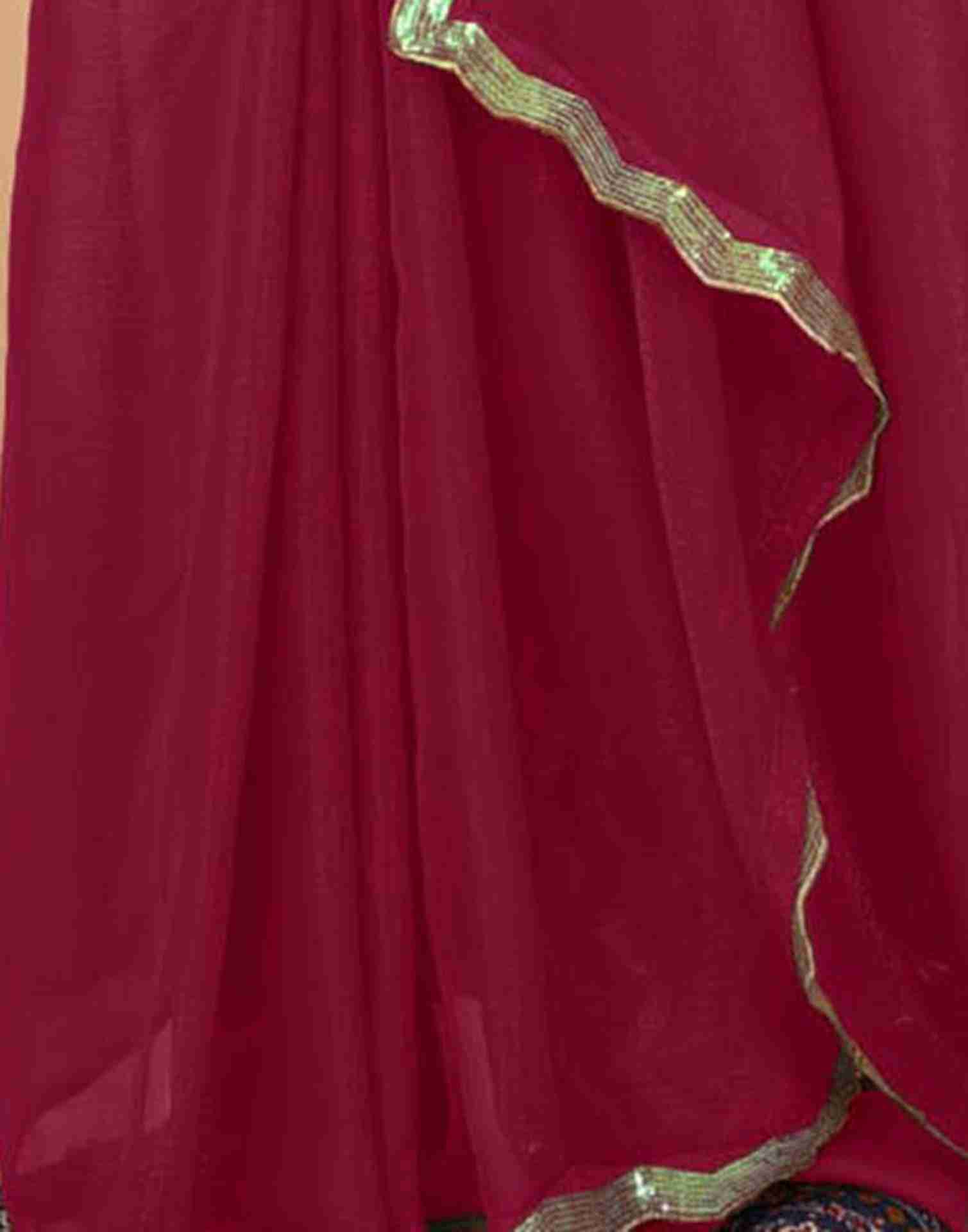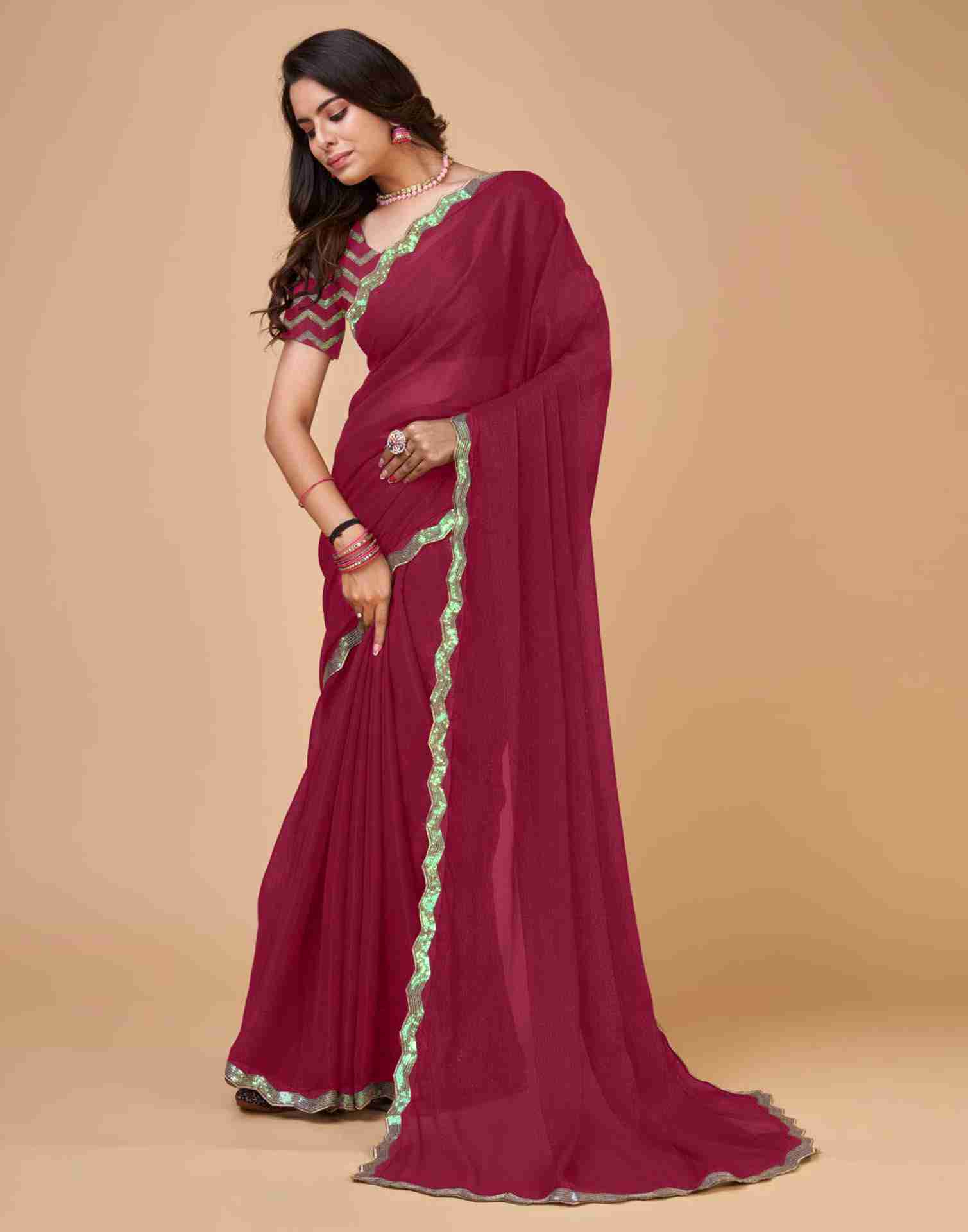 Dark Pink Chiffon Sequience Plain Saree