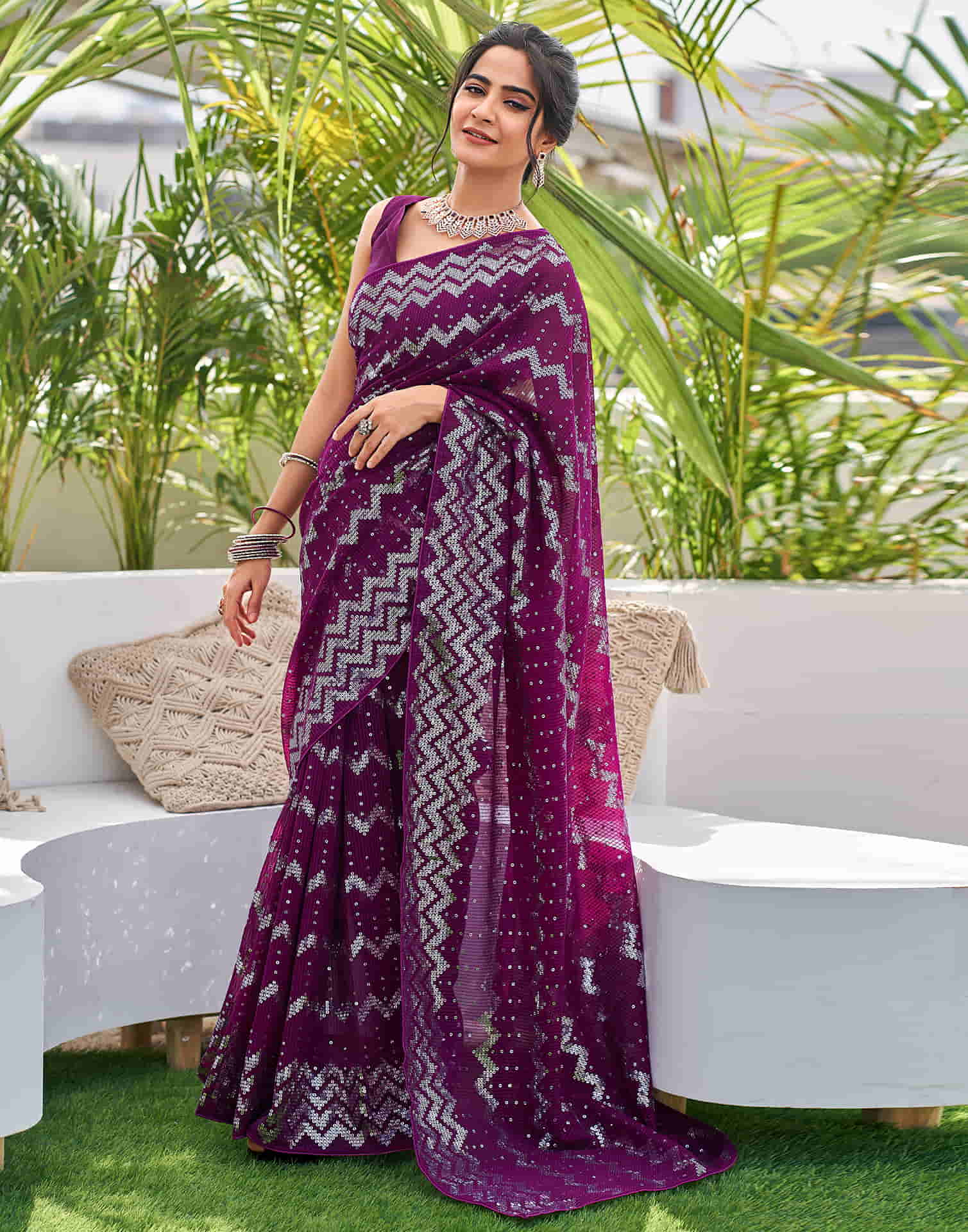 Dark Purple Georgette Sequence Saree