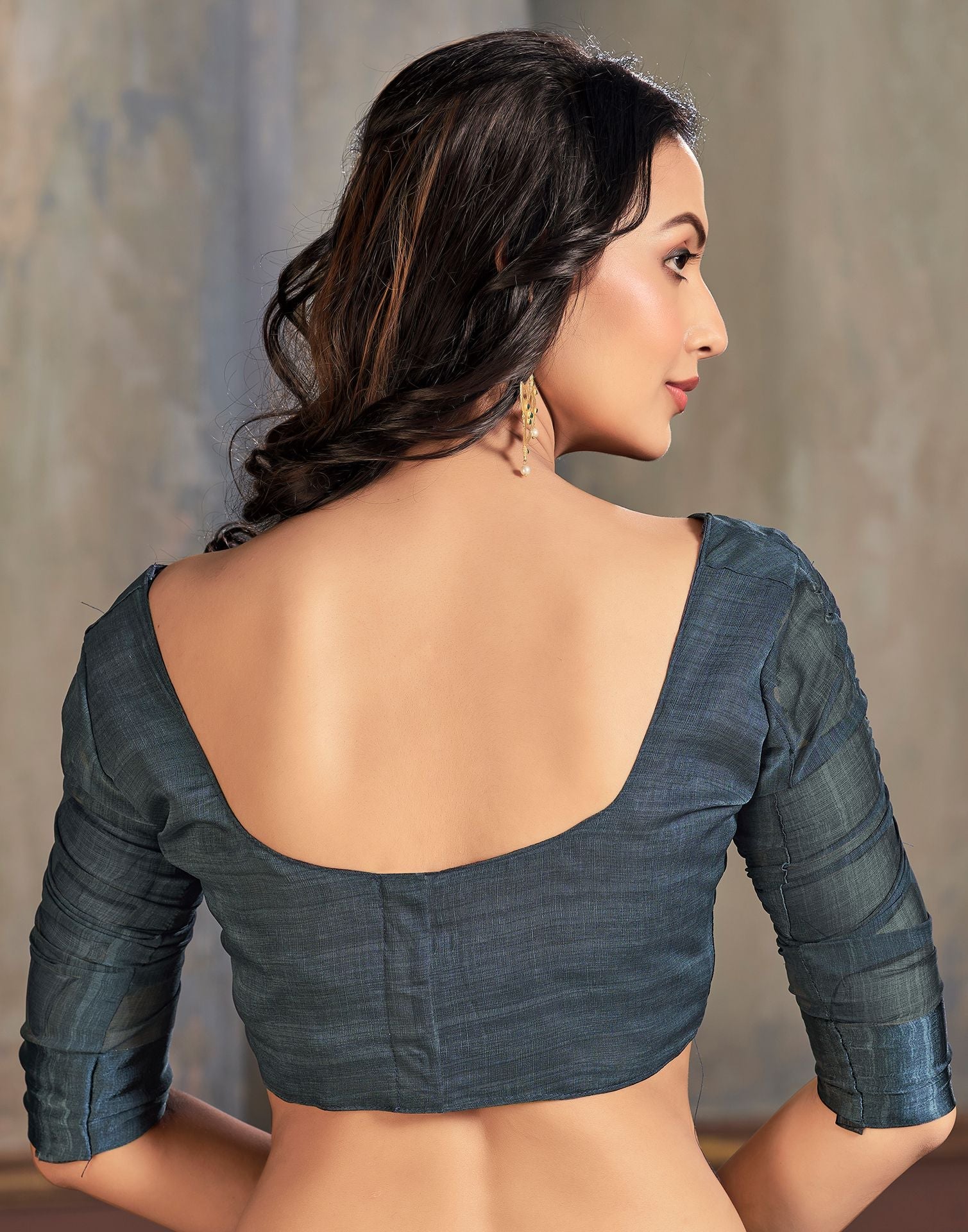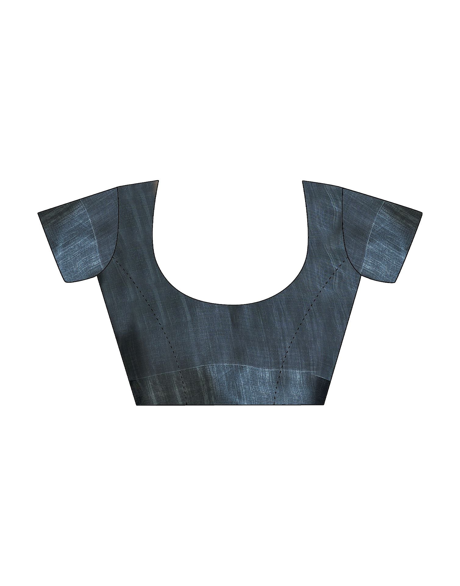 Deep Grey & Multicoloured Printed Chiffon Saree