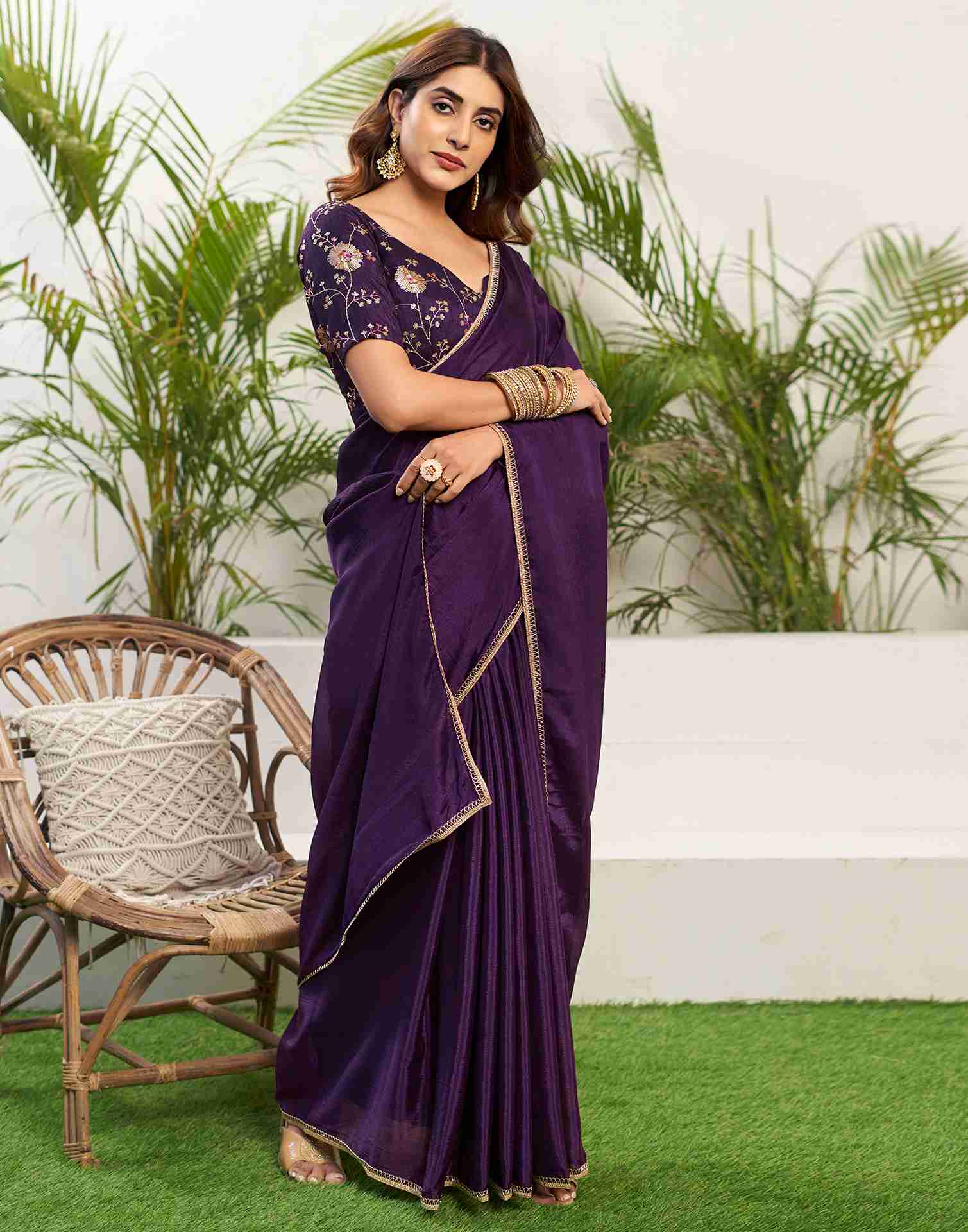 Deep Purple Chiffon Plain Saree