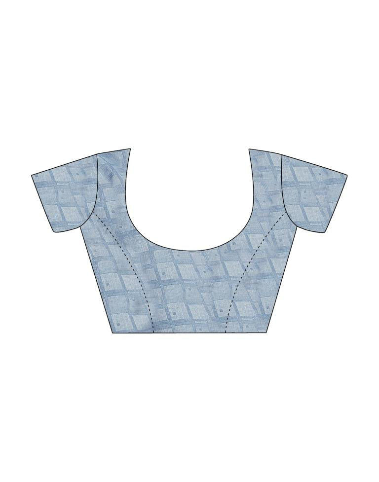 Dull Dark Blue Linen Printed Saree