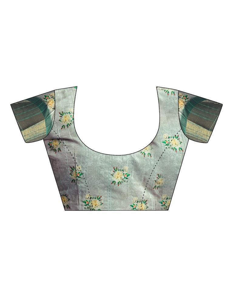 Dusty Green Silk Printed Saree