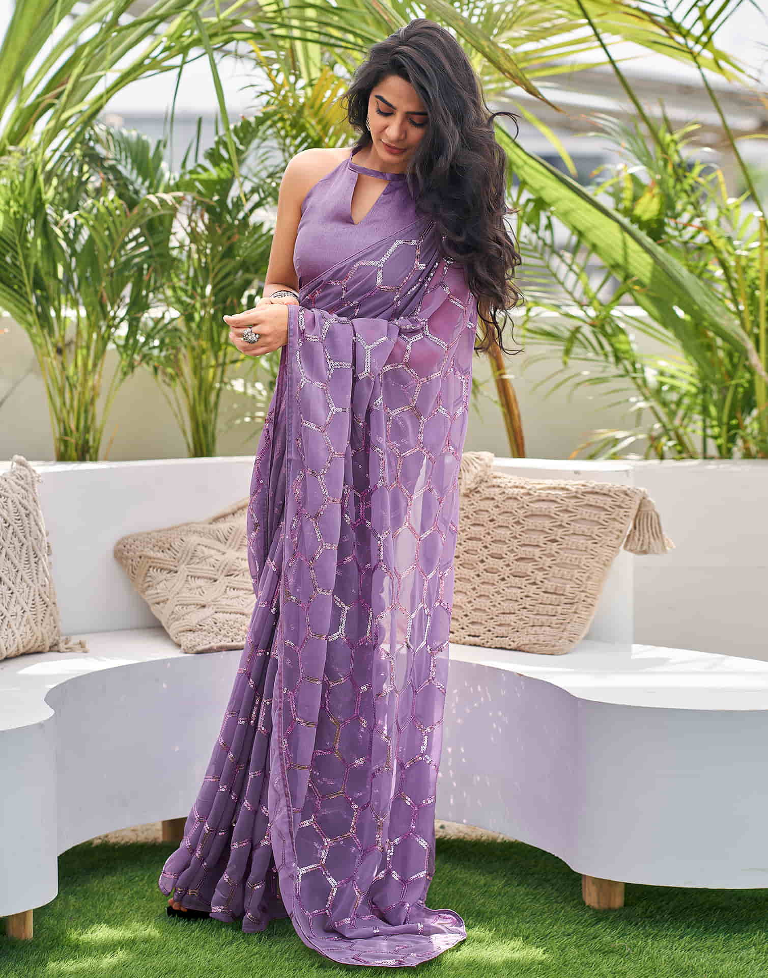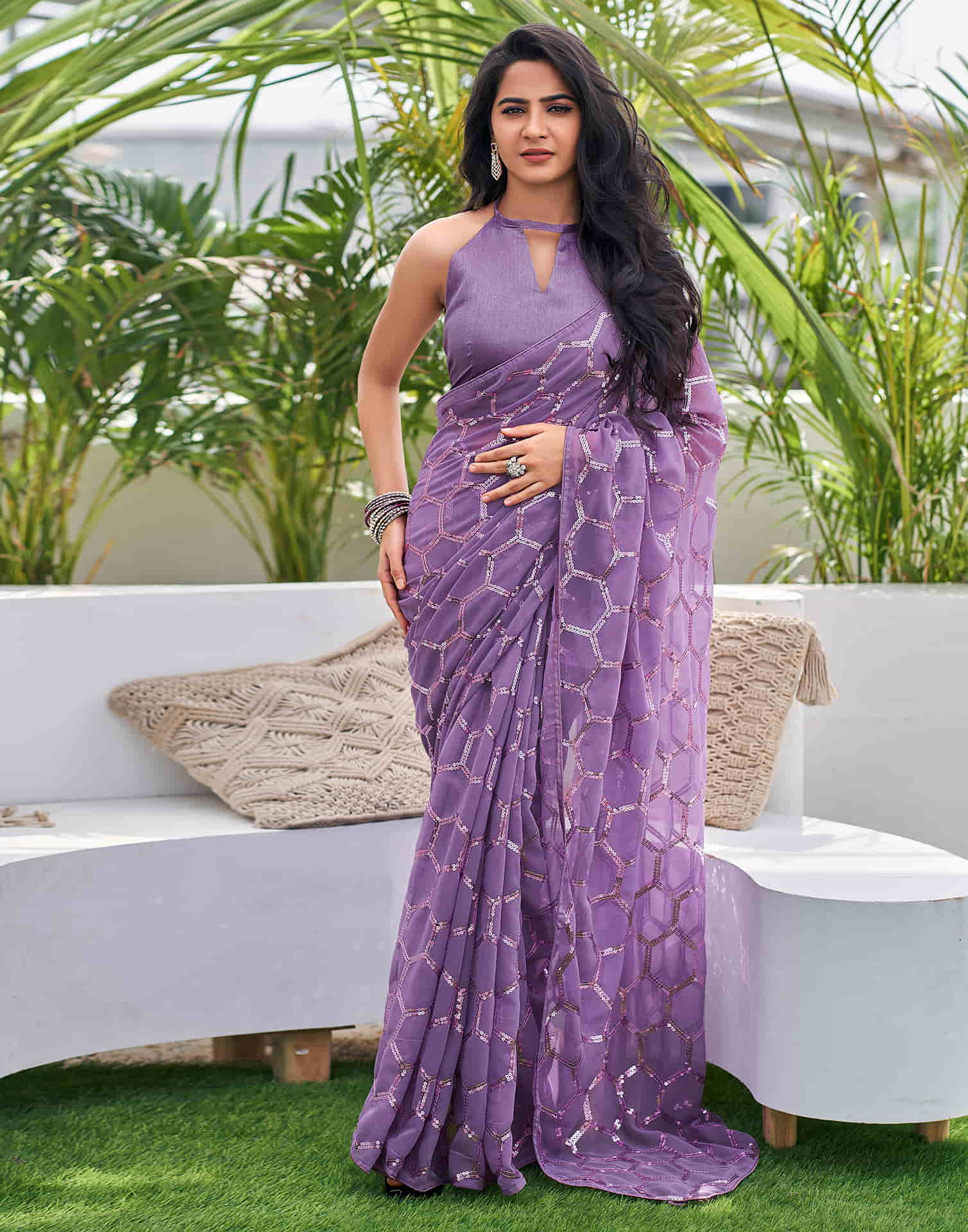 Dusty Lavender Georgette Sequence Saree
