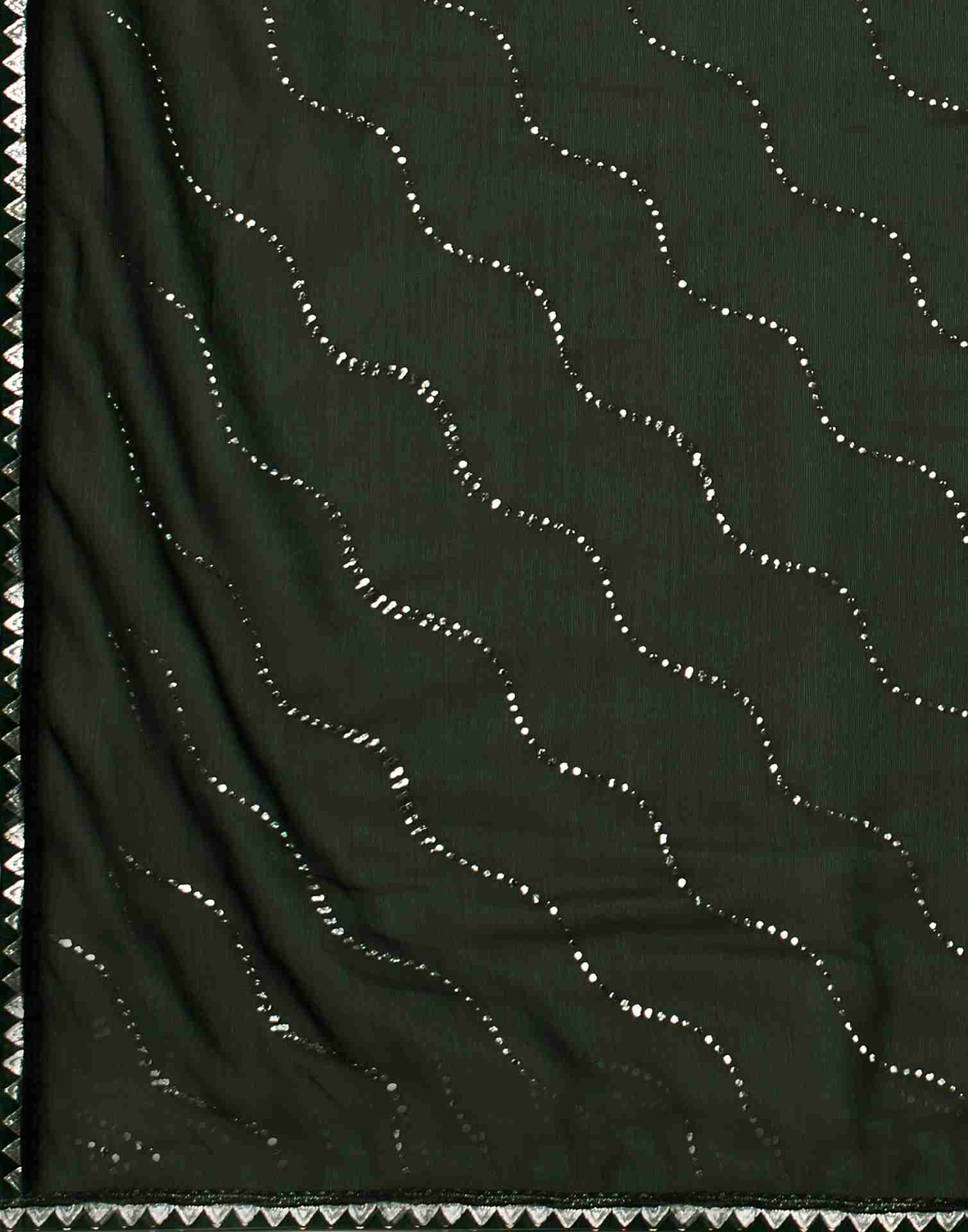 Dark Green Chiffon Plain Printed Saree