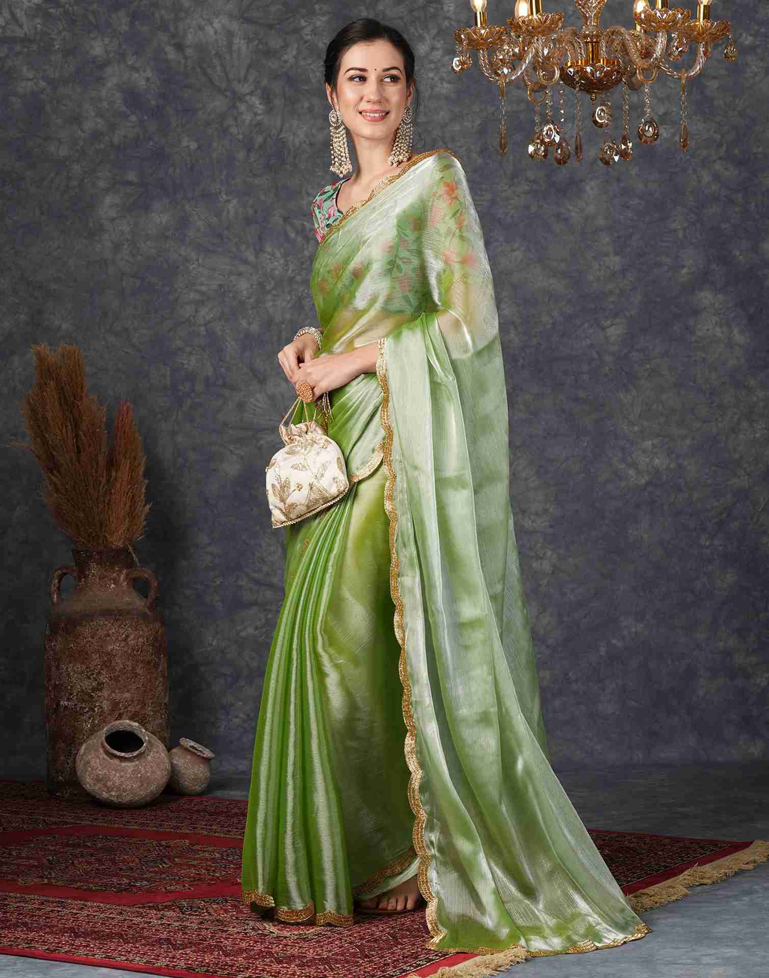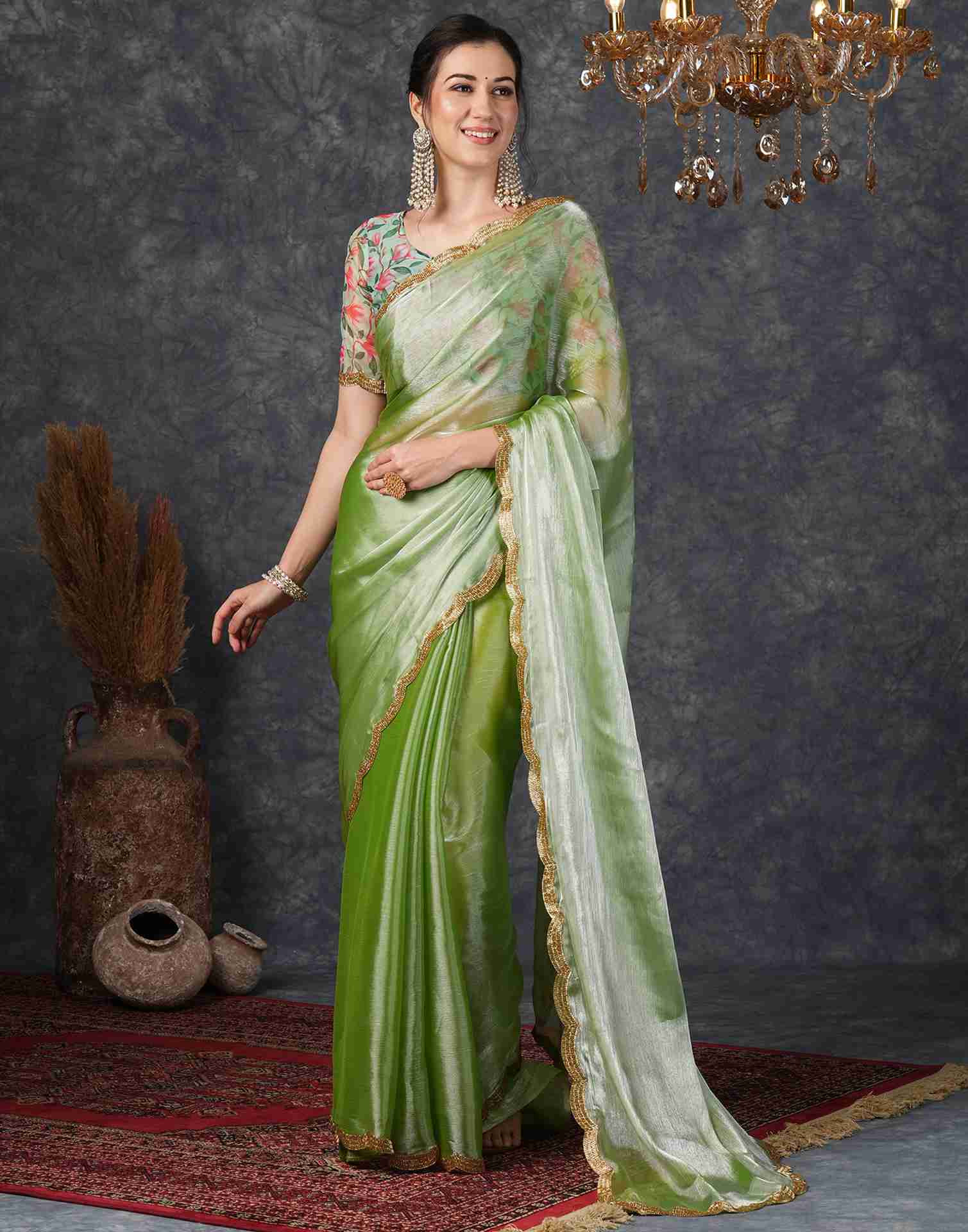 Green Chiffon Plain Jimmy Choo Saree