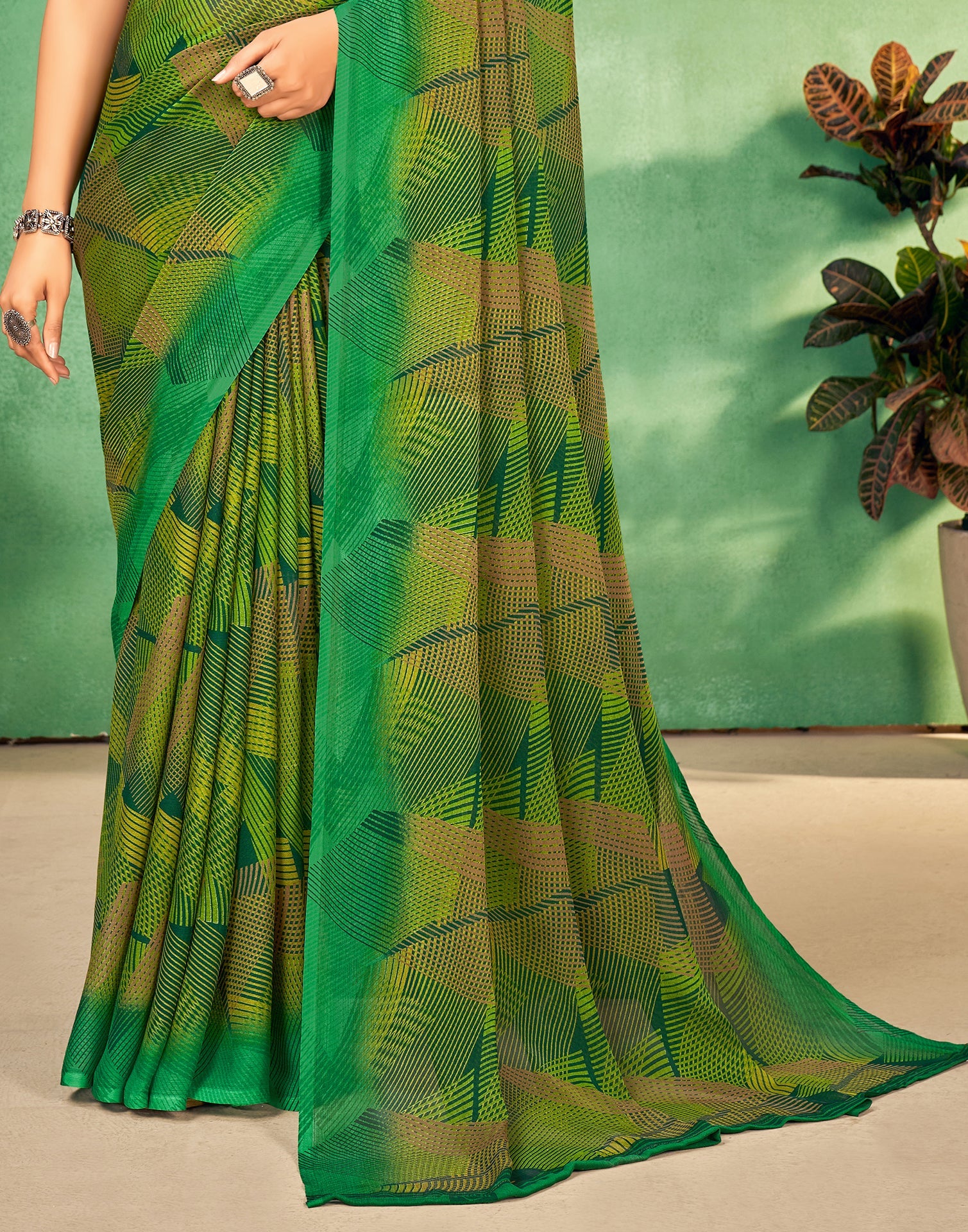 Green Chiffon Printed Saree