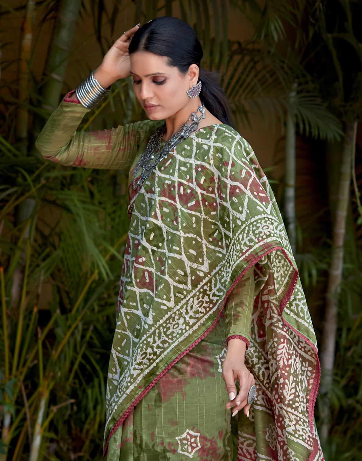 Green Cotton Printed Saree