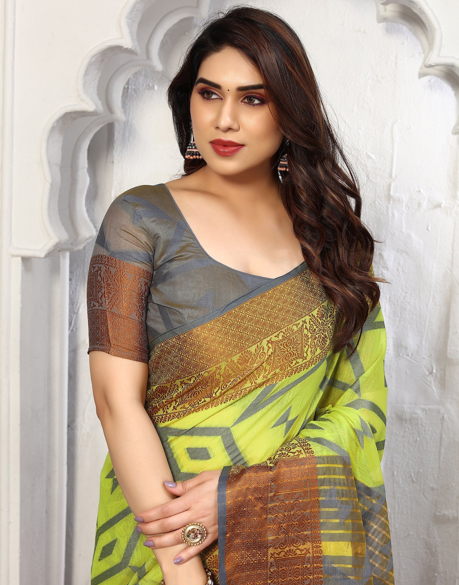Green Cotton Weaving Saree3119S5723