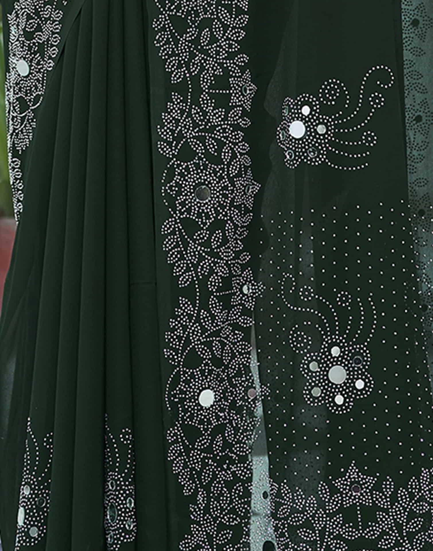 Green Swarovski Georgette Stone Work Saree