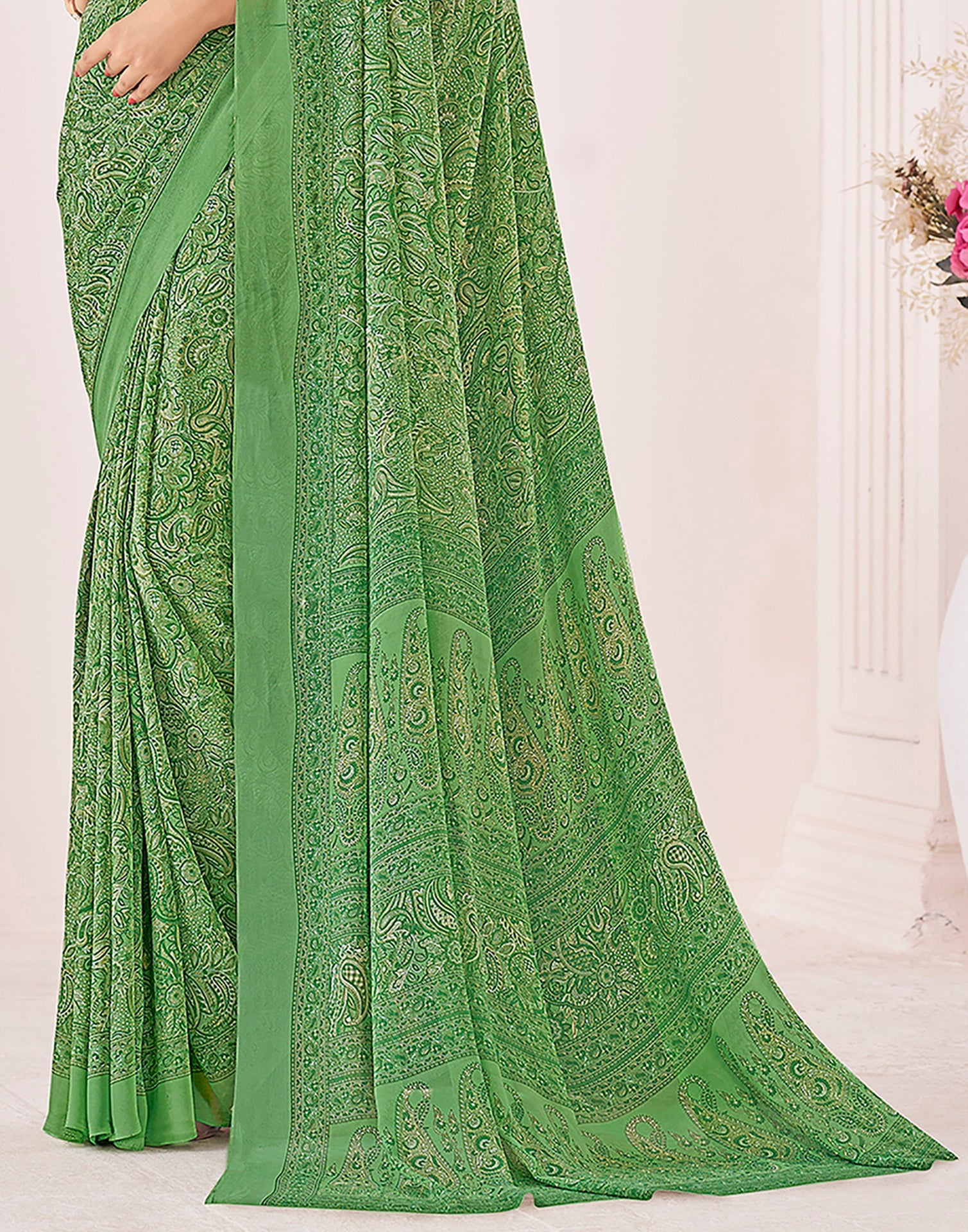 Green Georgette Printed Saree
