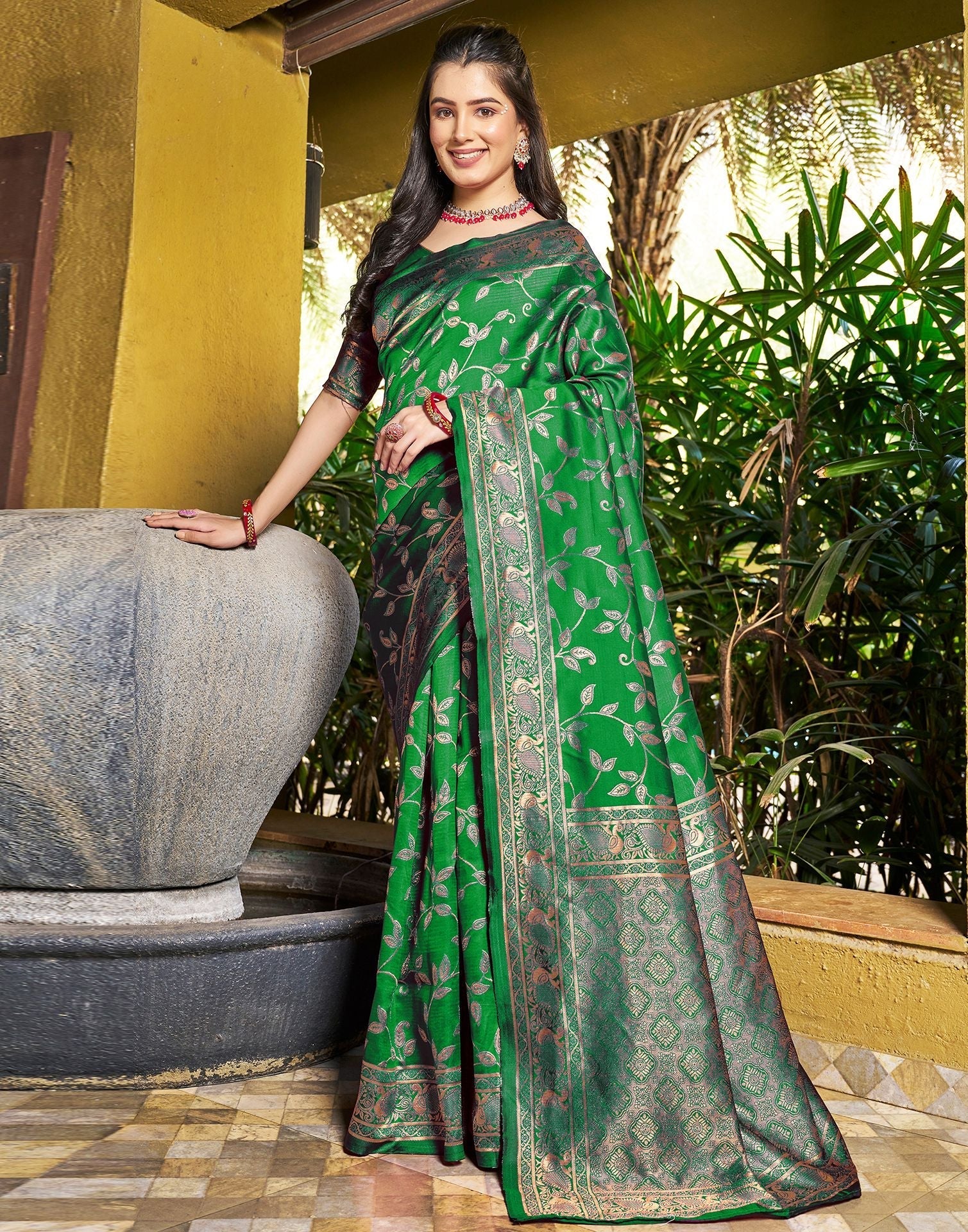 Green Jacquard Silk Saree