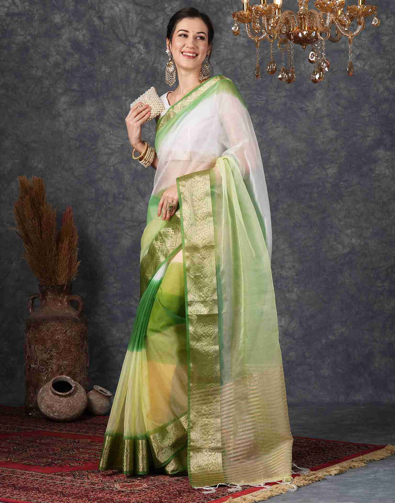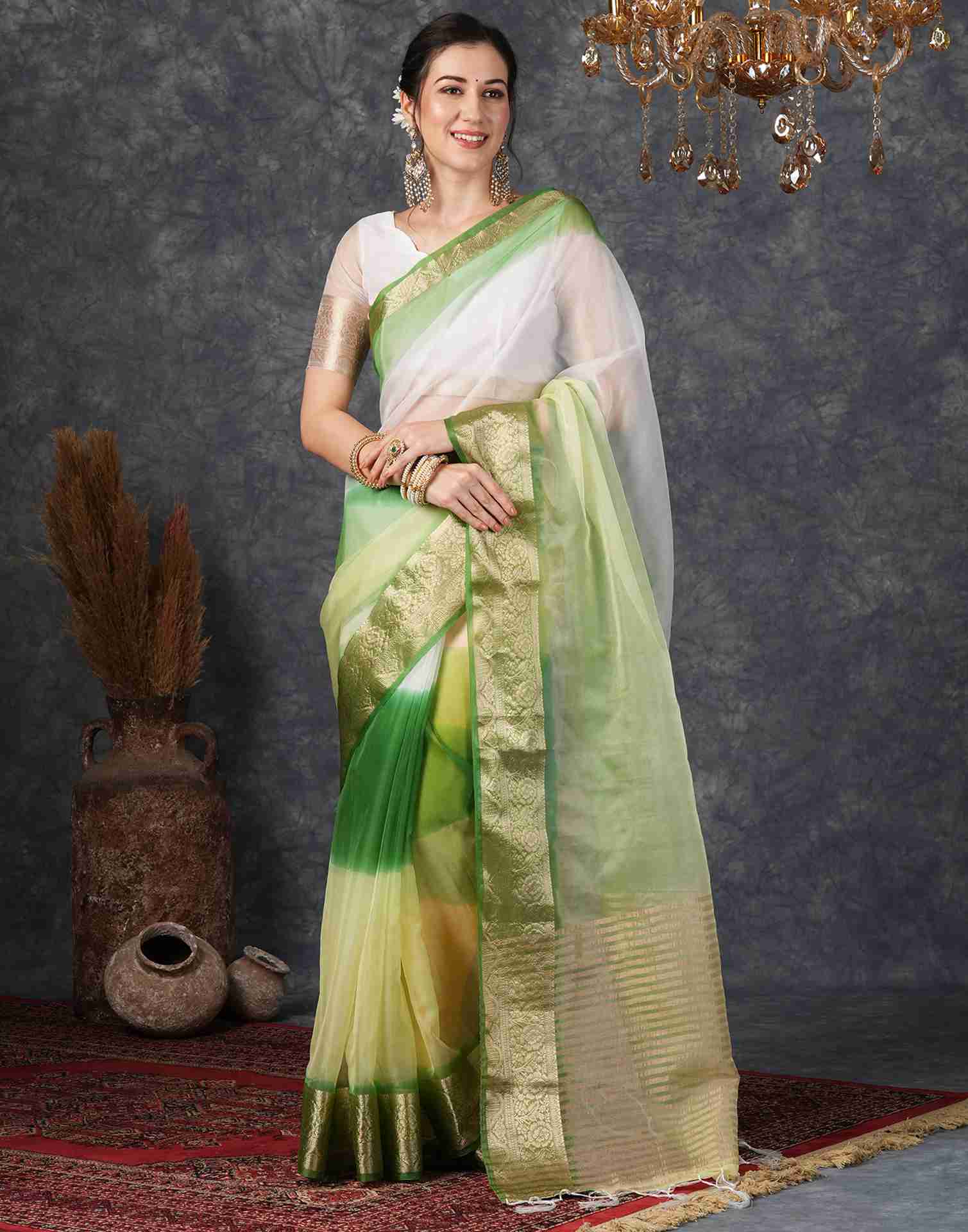 Green Organza Plain Woven Saree