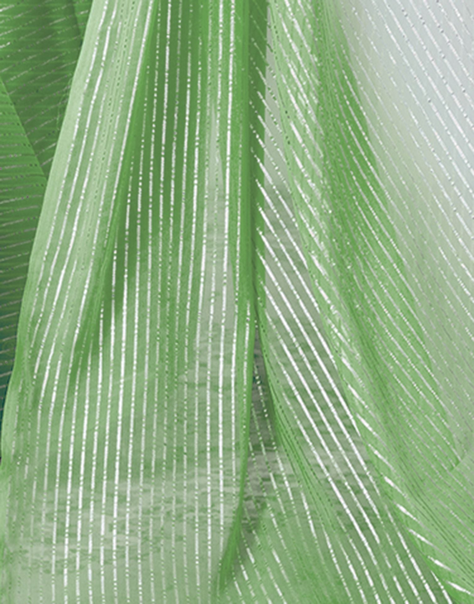 Ready to Wear Green Wovern Zari Strip Georgette Saree