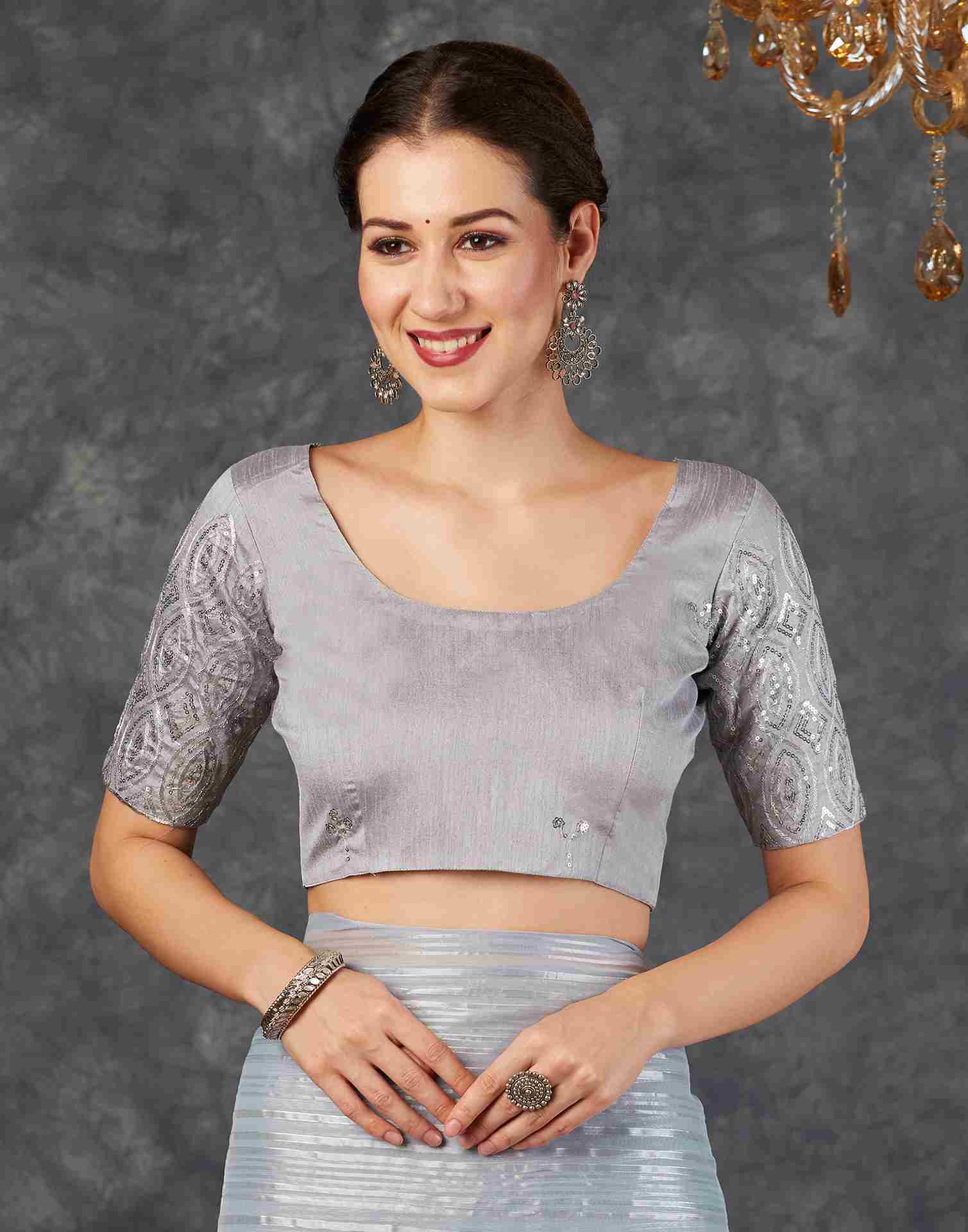 Grey Georgette Plain Saree