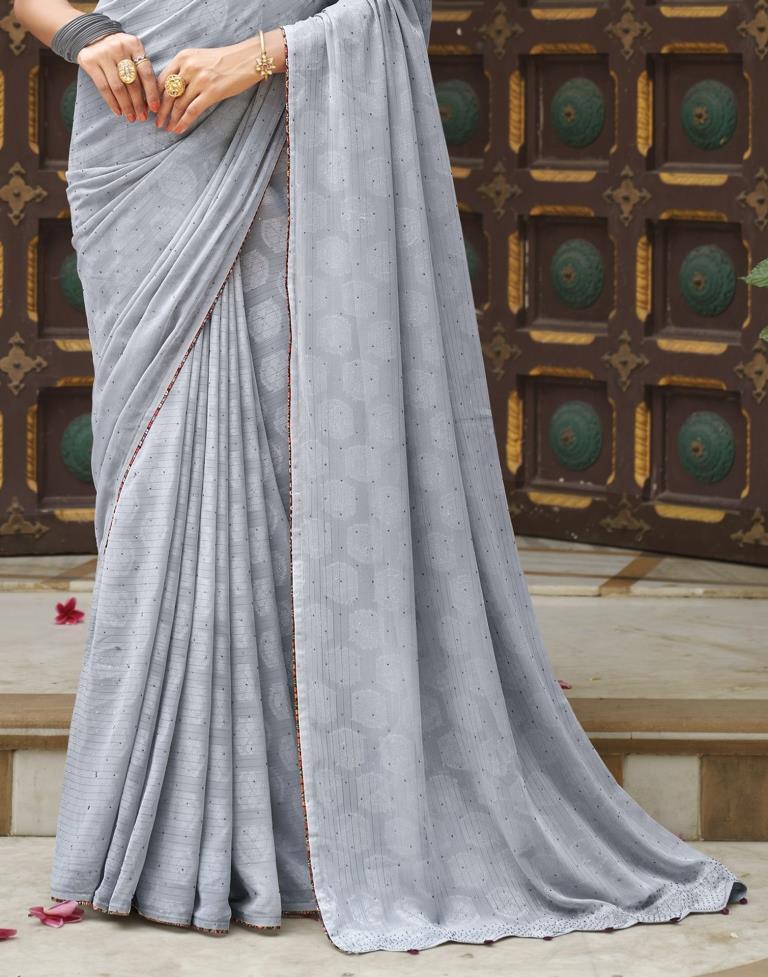 Grey Plain Georgette Saree