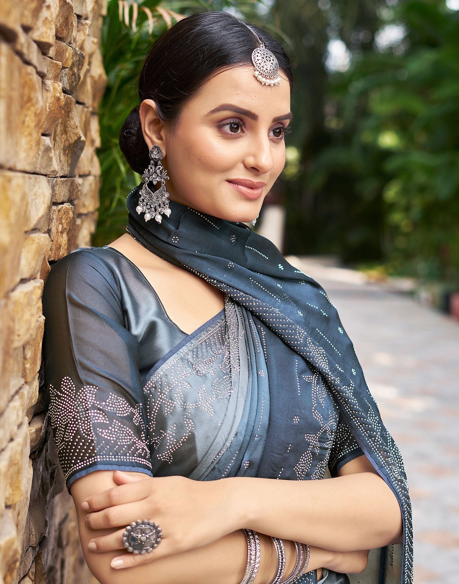 Grey Plain Georgette Saree
