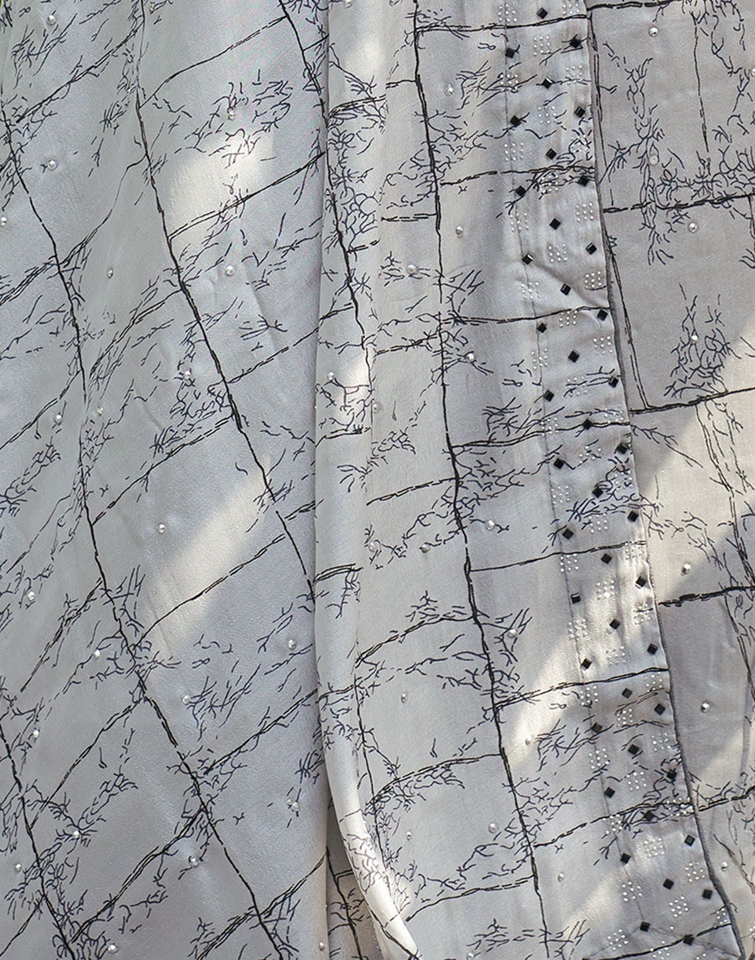 Grey Printed Silk Saree