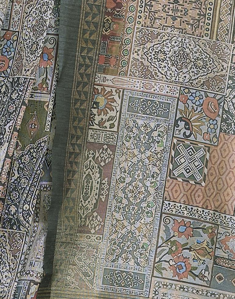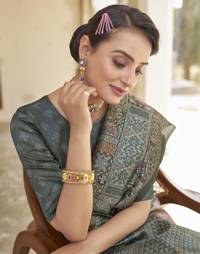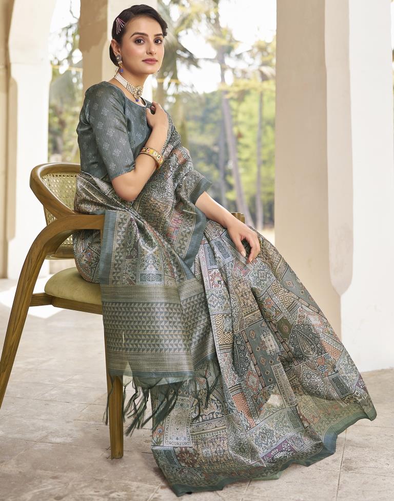 Ready to Wear Grey Silk Printed Saree