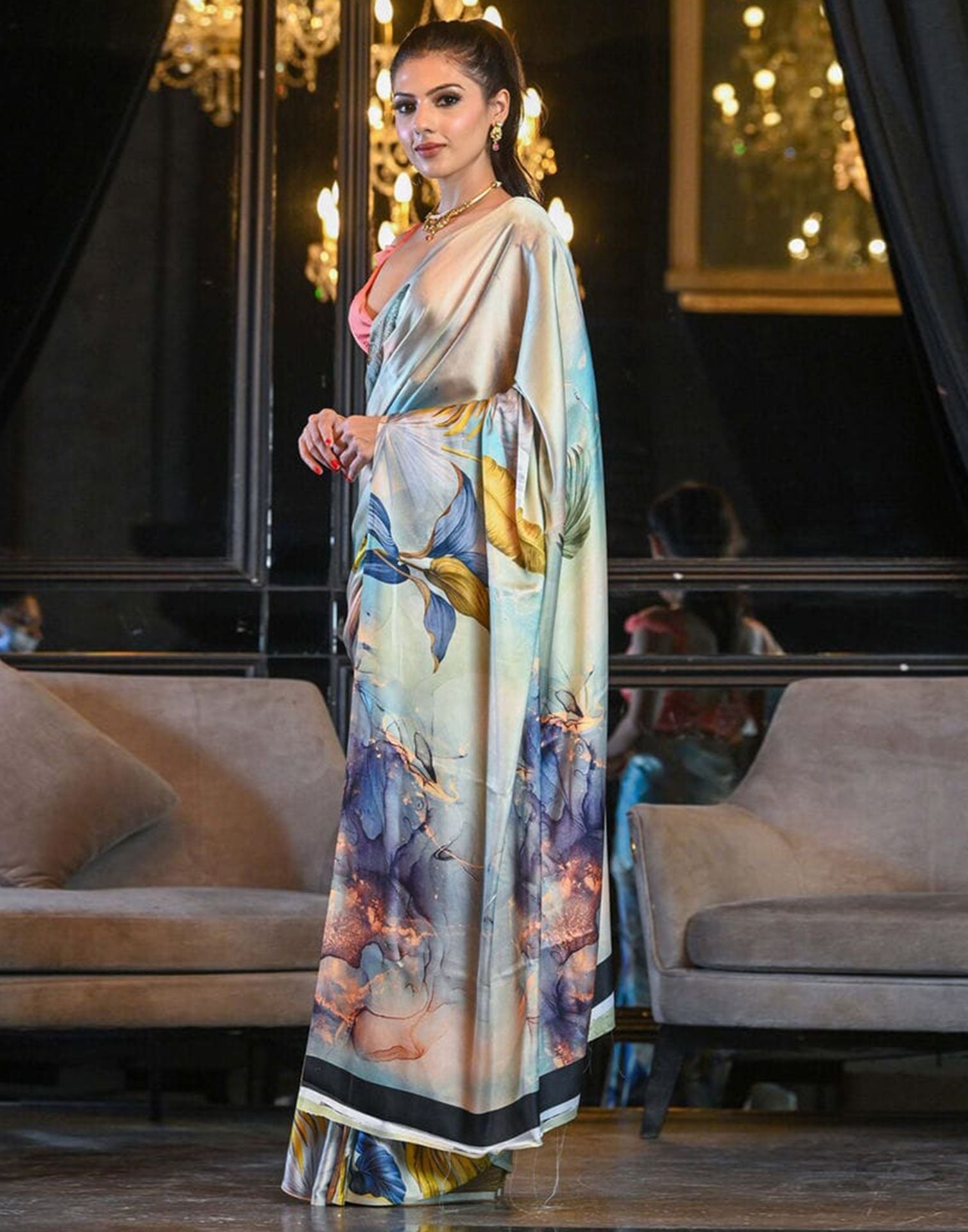 Light Blue Printed Silk Saree