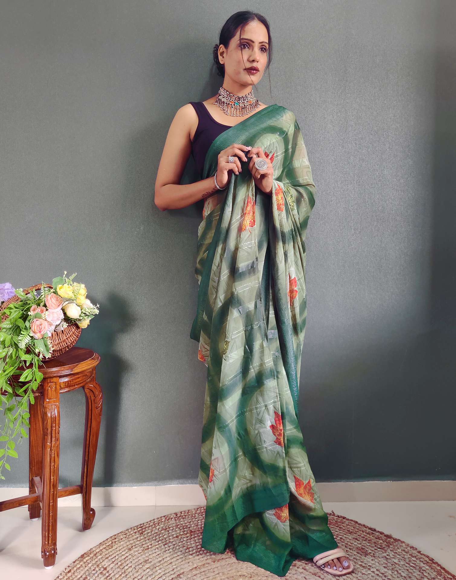Ready to Wear Light Green Printed Georgette Saree