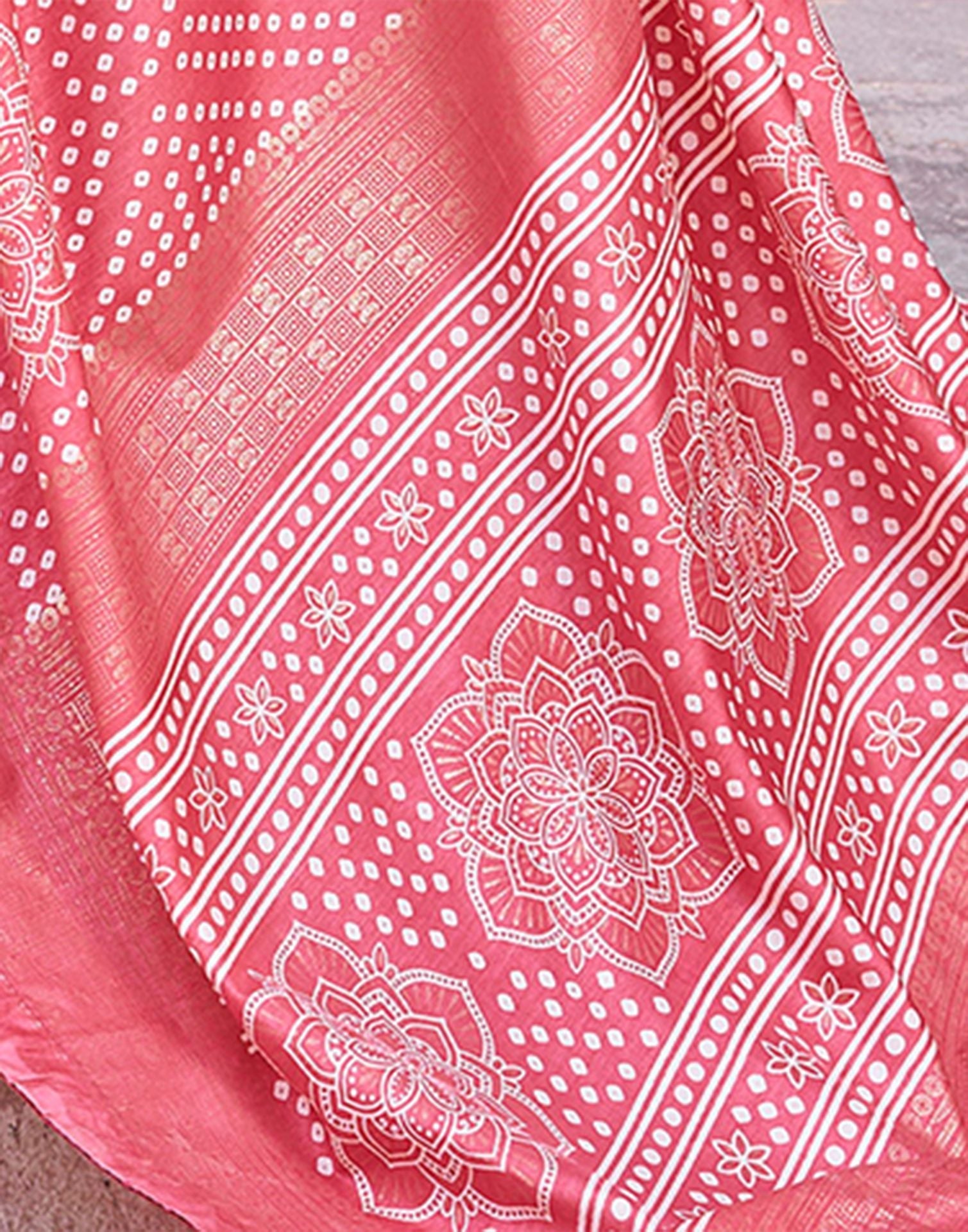 Light Pink Bandhani Silk Saree