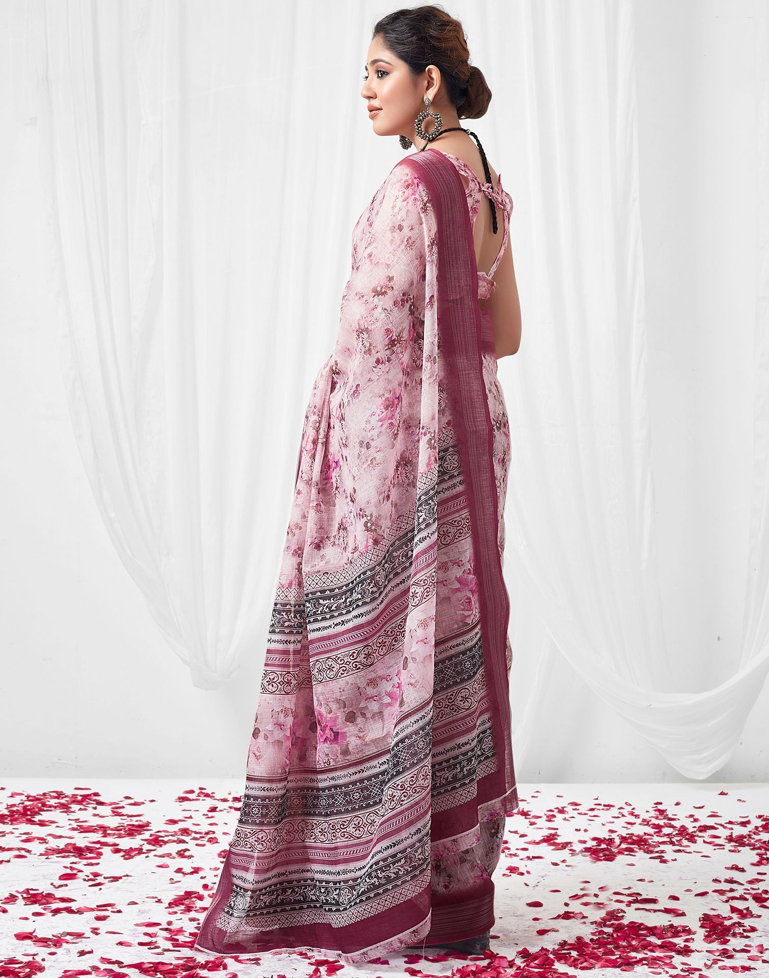 Light Pink (Peach) Printed Linen Saree