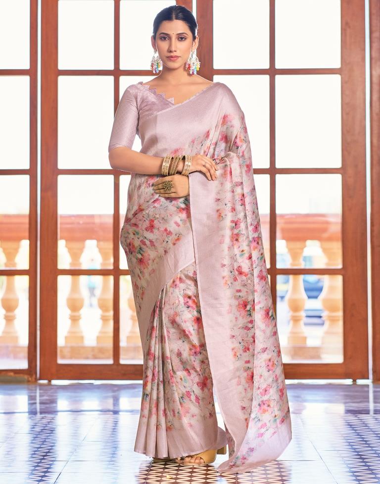 Light Pink Silk Printed Saree