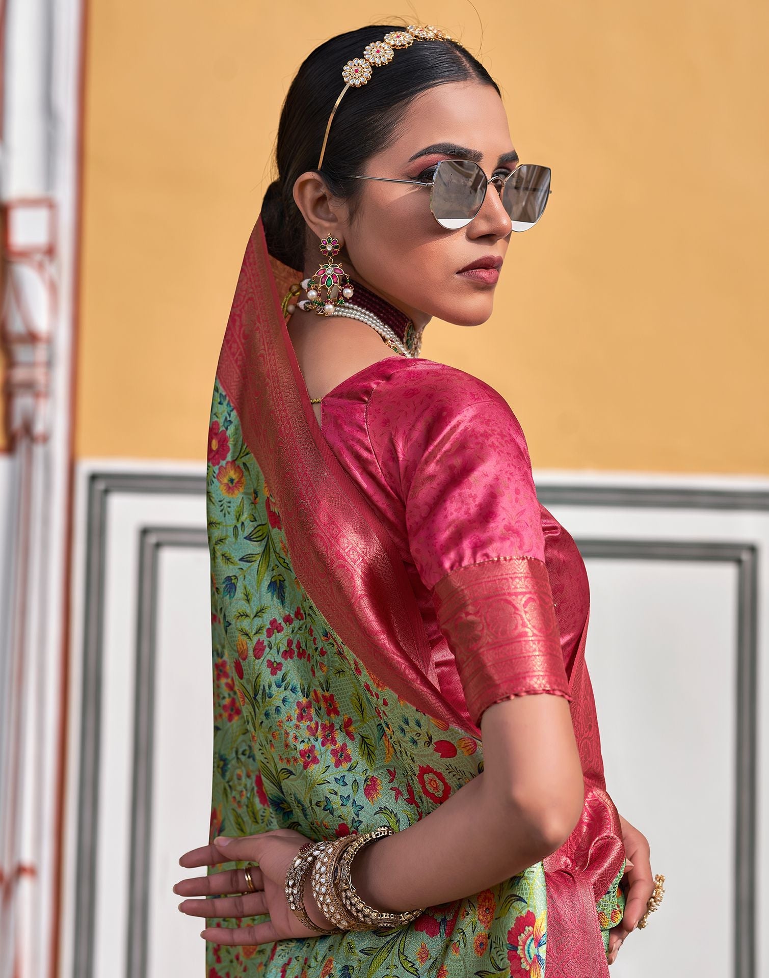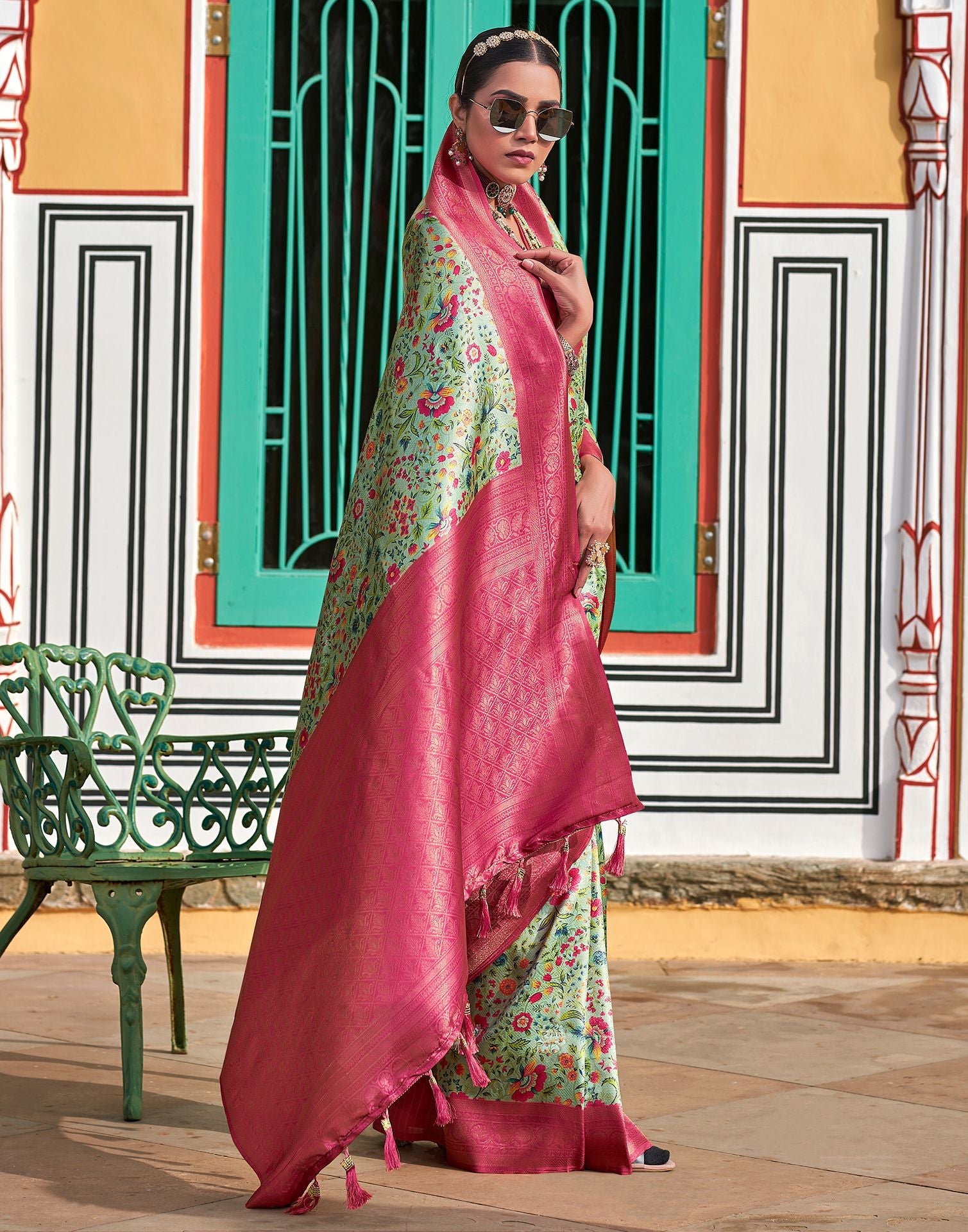 Light Pista Green Printed Silk Saree